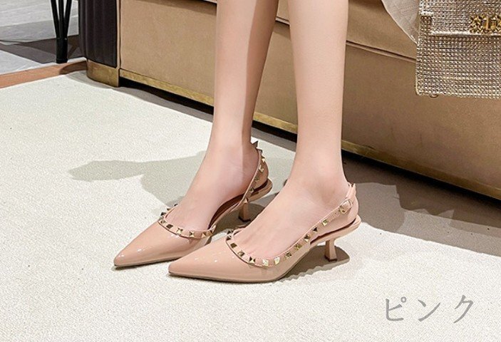 スリッポン ローファー モカシン とんがりトゥ リベット付 シンプル 【36】22.5~23cm シルバー