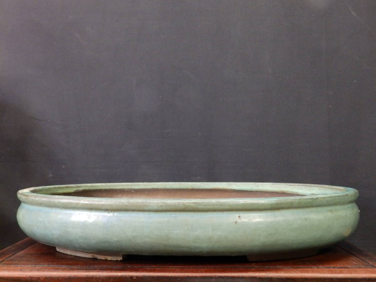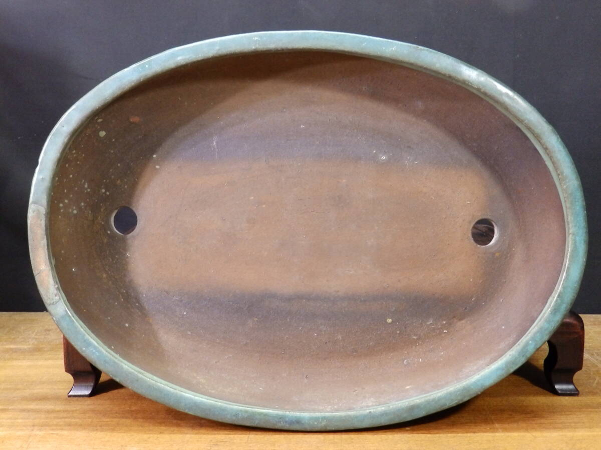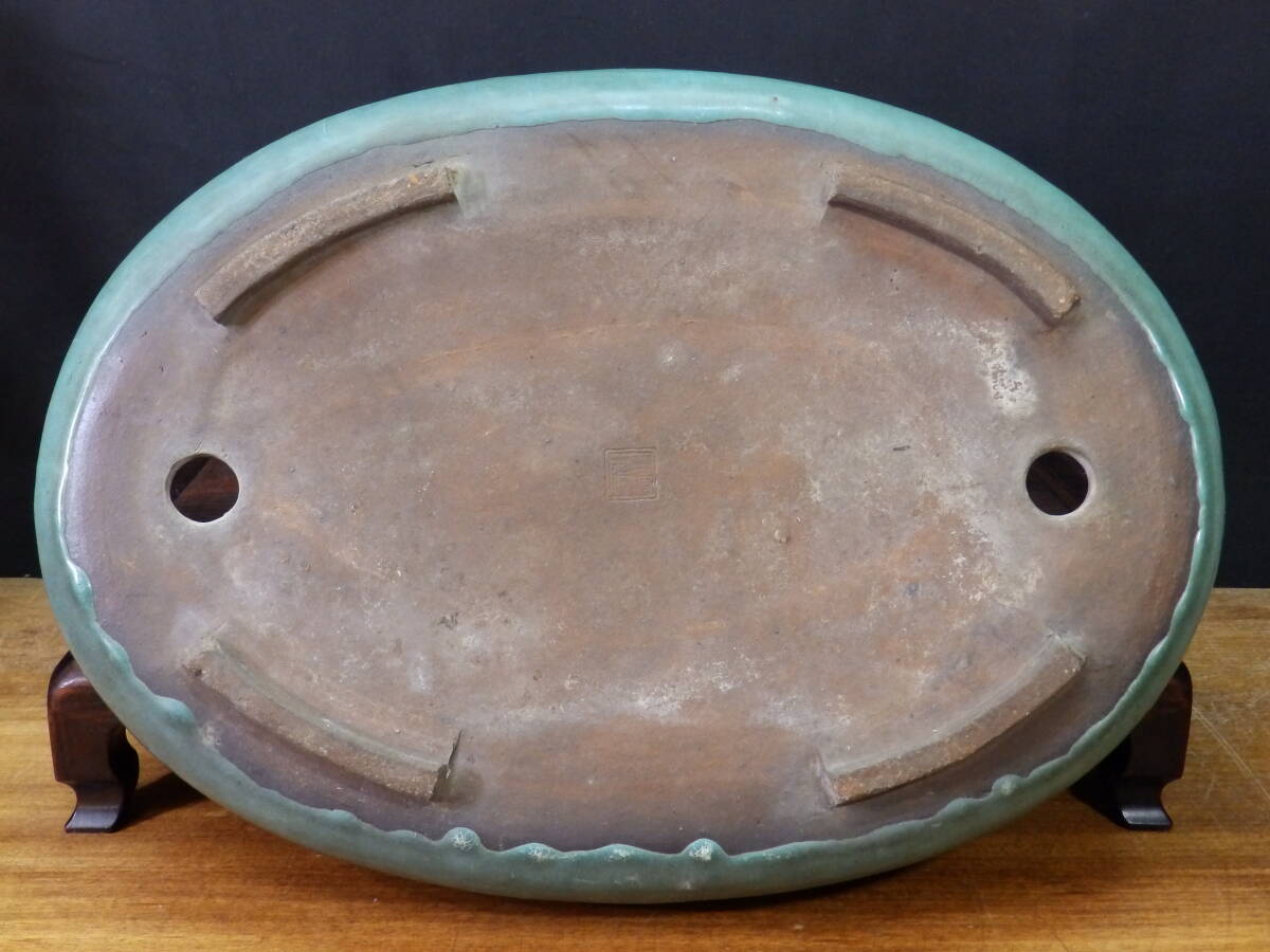 ★盆栽日和★ 和鉢 【三琇一陽】 緑釉袋式楕円鉢 46㎝ (h・k・n)
