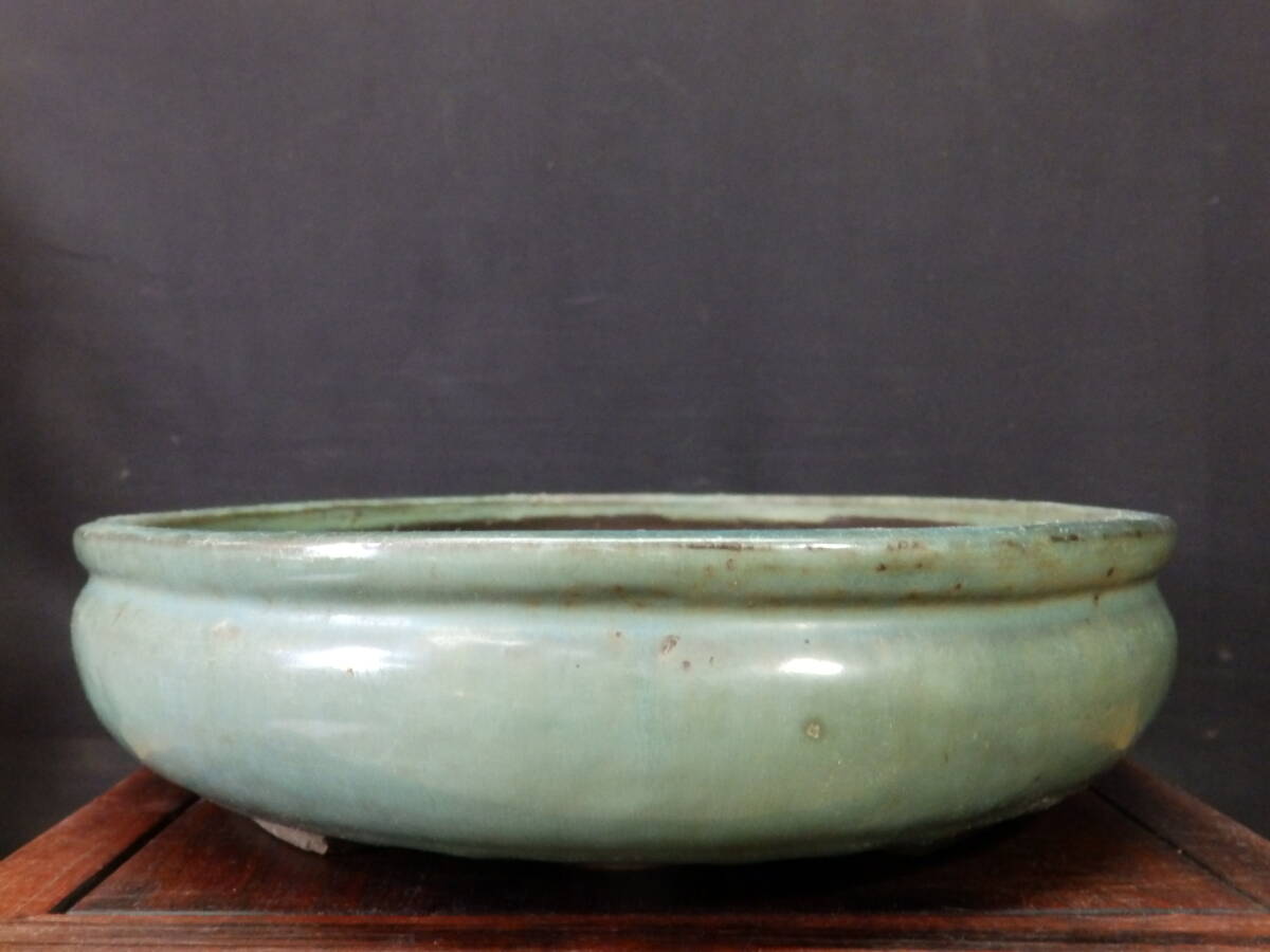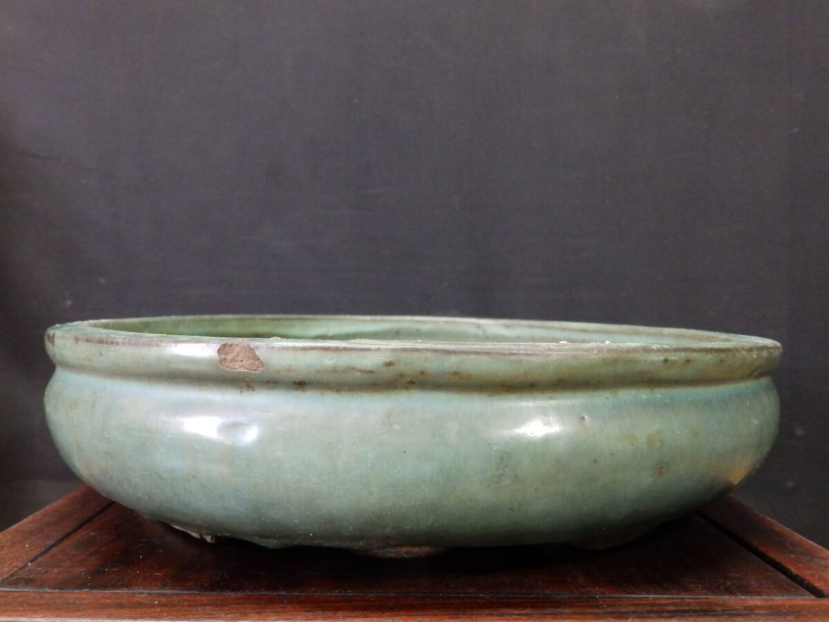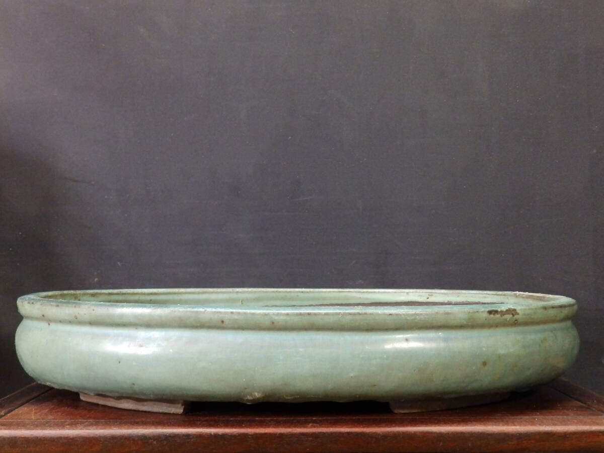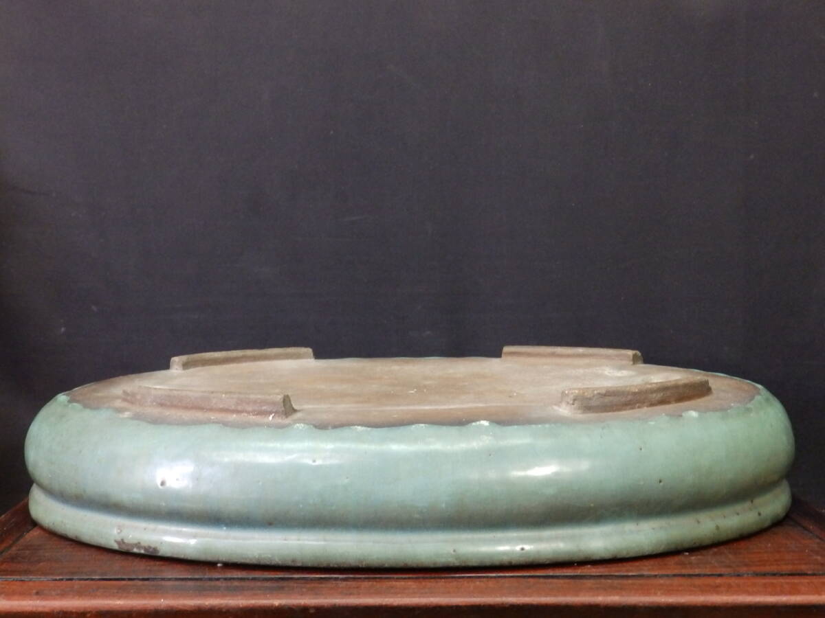 ★盆栽日和★ 和鉢 【三琇一陽】 緑釉袋式楕円鉢 46㎝ (h・k・n)