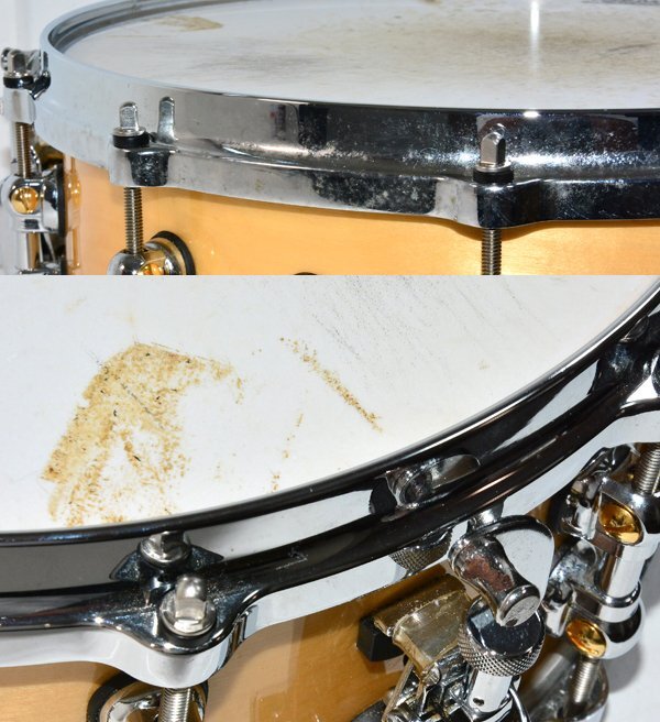 こちらはUSED品になります。 ・ヘッドにスレ、打ちキズ、汚れ等が見られます。 ・シェルに多少のスレ、小キズ等が見られます。 ・フープに多少のキズ、くすみ、サビ、塗装剥がれ等が見られます。 ・ラグ、ストレイナー等にスレ、小キズ、くすみ等が見られます。 ・ベントホールにスレ、くすみが見られます。 ・スネアサイドに多少のスレ、キズが見られます。 全体的にキズ、スレ、汚れ等が見られますが 上記以外に特に目立ったキズ、ダメージは見られない状態です。 |