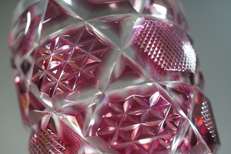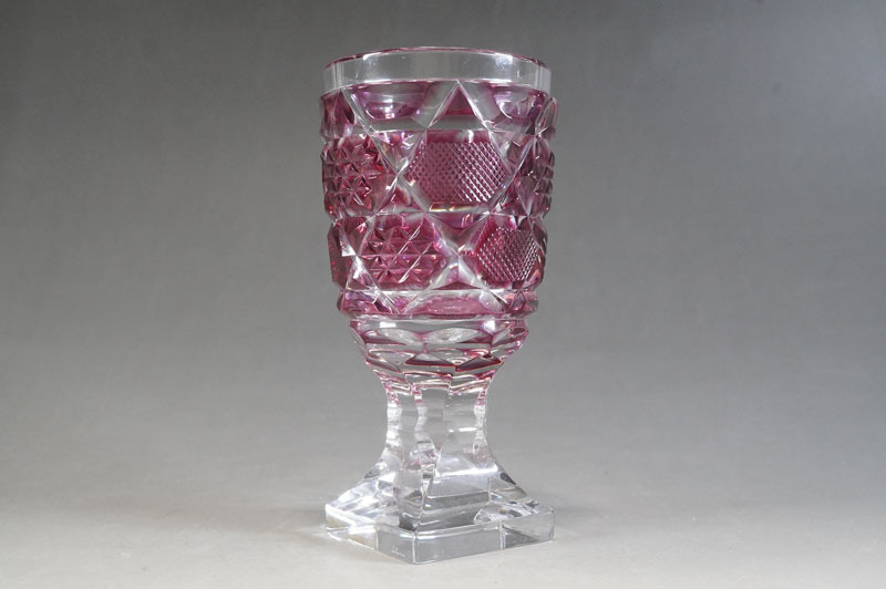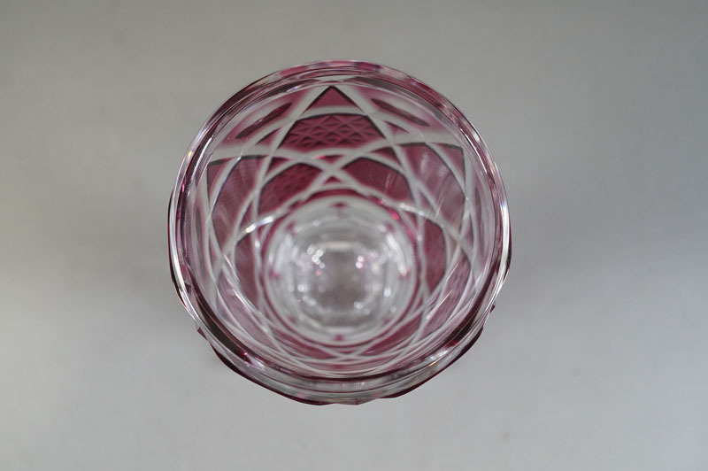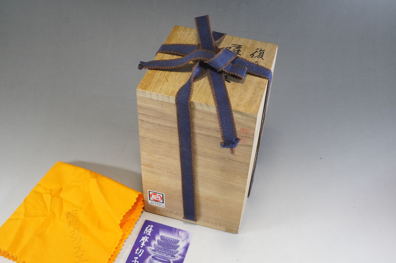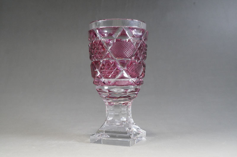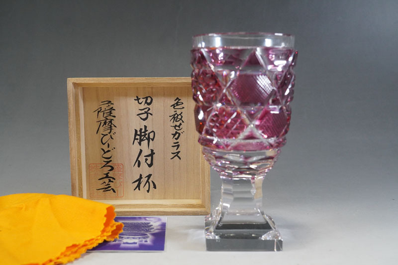 【K238】薩摩びーとろ工芸 「復元 薩摩切子 色被せガラス 切子 脚付杯」 酒器 共箱 薩摩ガラス工芸