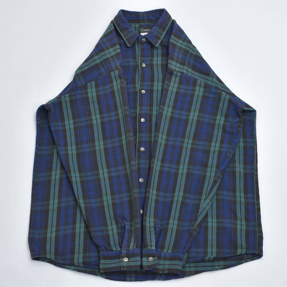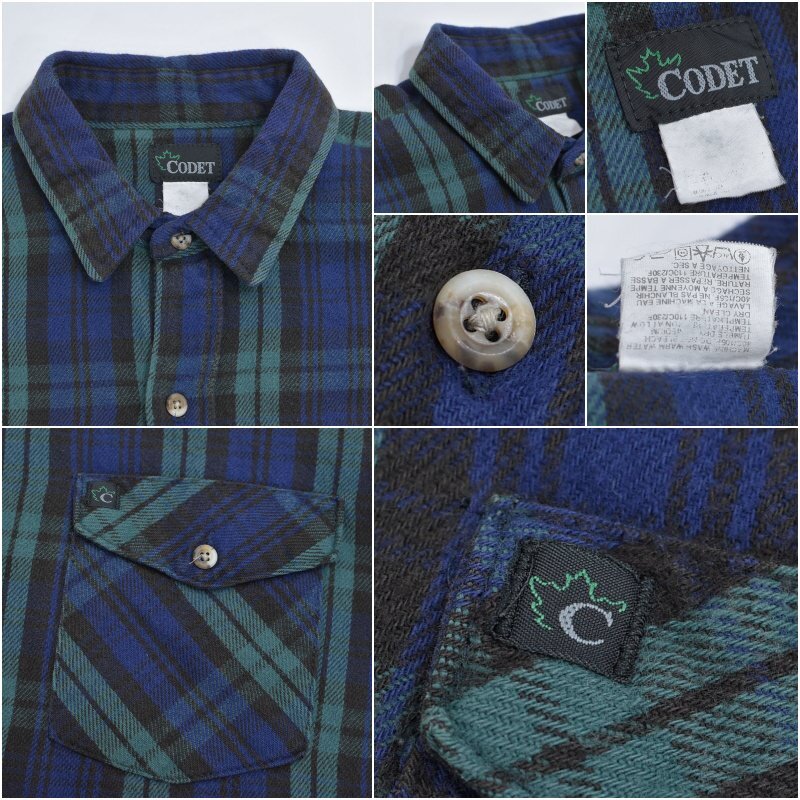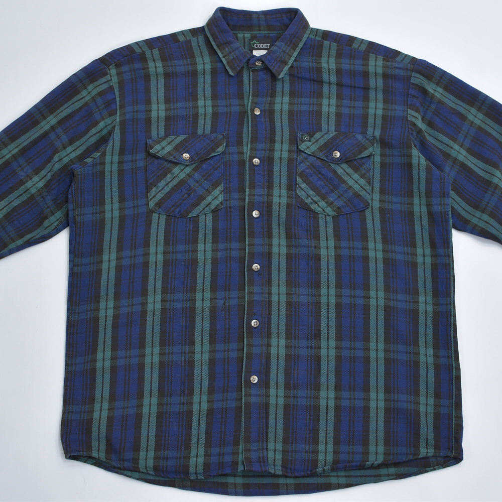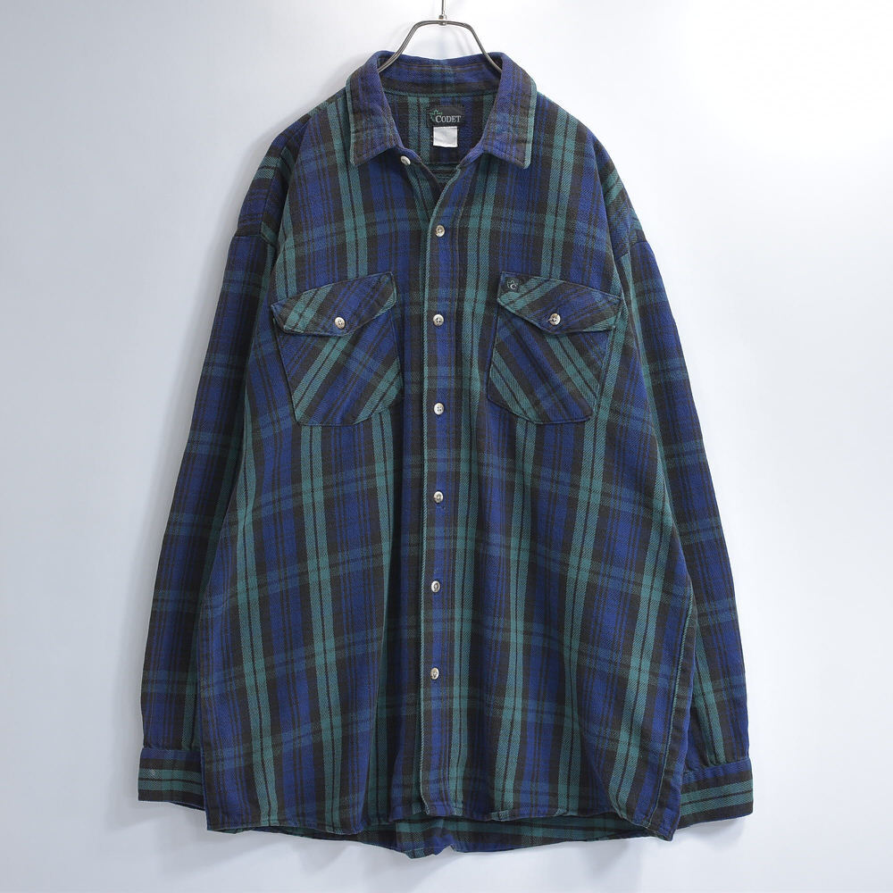 90s CODET コーデット ダブルポケット タータンチェック ヘビーネルシャツ ワークウェア ブルー グリーン ブラックウォッチ ヴィンテージ ビンテージ USA アメリカ古着 メンズXL相当