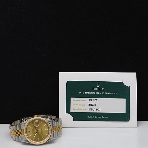 1円 保付 稼働 良品 ロレックス デイトジャスト16233 X627920 YG/SS AT/自動巻 ゴールド文字盤 メンズ腕時計 0694760 9ANT IGR
