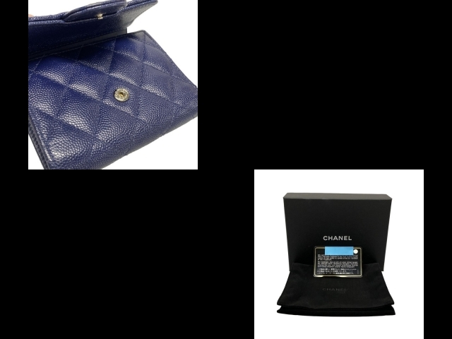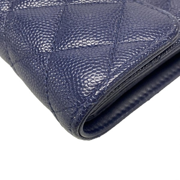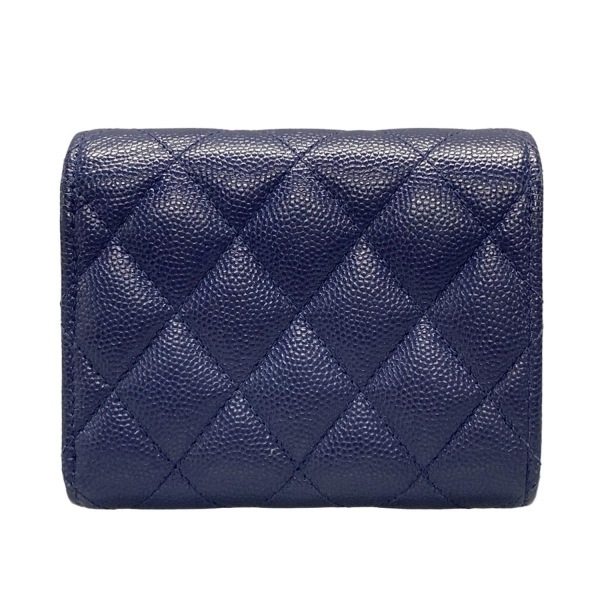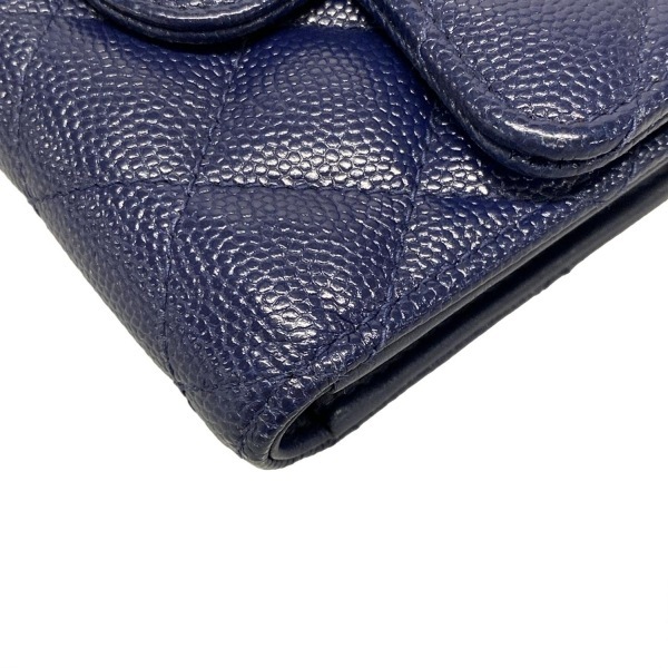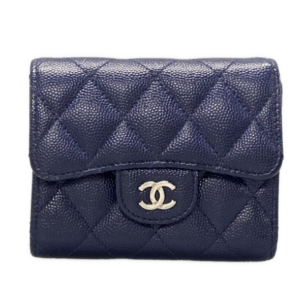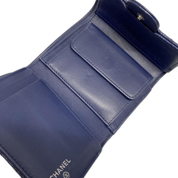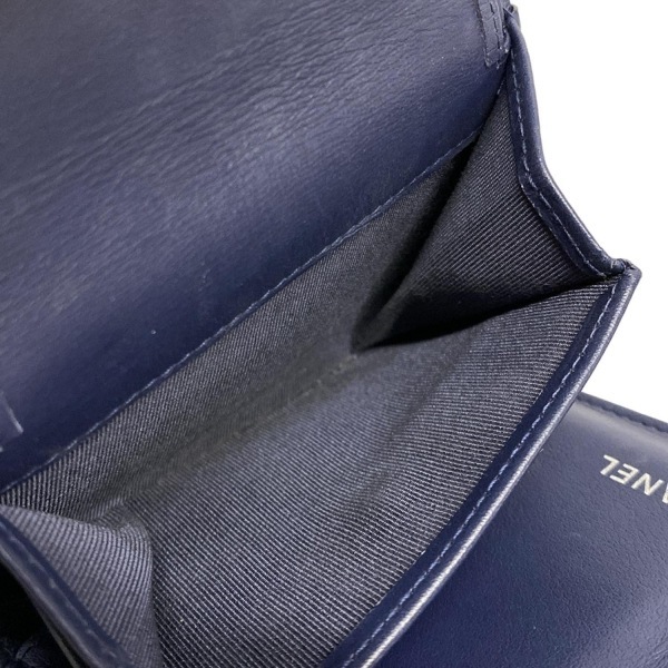 シャネル CHANEL 3つ折り財布/ミニ/コンパクト マトラッセ ダークネイビー シルバー金具 美品 財布