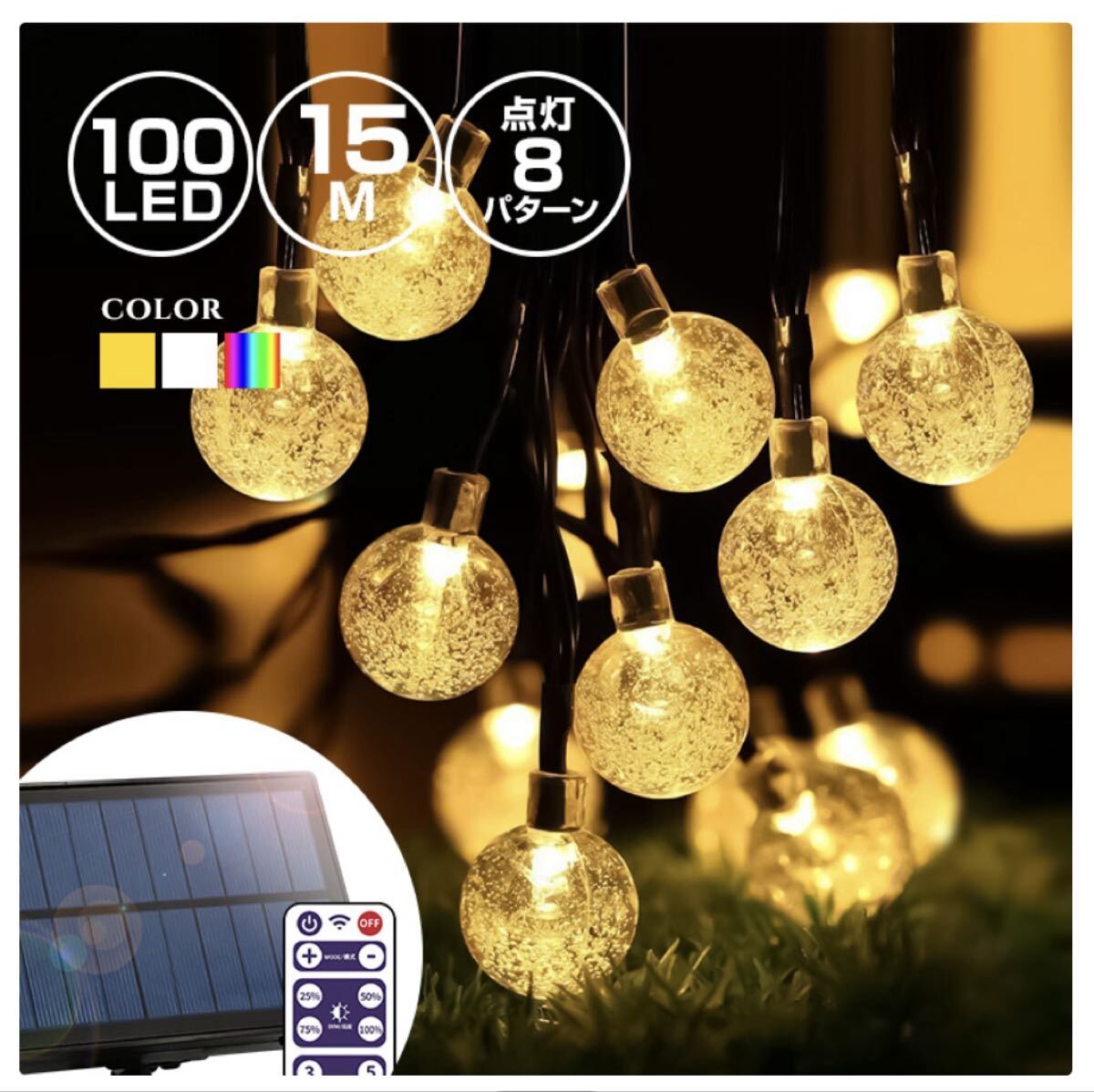 ソーラー イルミネーション バブル ボール ストレート LED100球 長さ15m レインボーリモコン付属 屋外用 防水 大型ソーラーパネル 大容量バッテリー ソーラー充電式 ライト おしゃれ かわいい イルミネーションライト クリスマス ツリー 飾り付け ガーデン 玄関 防滴 キャンプ
