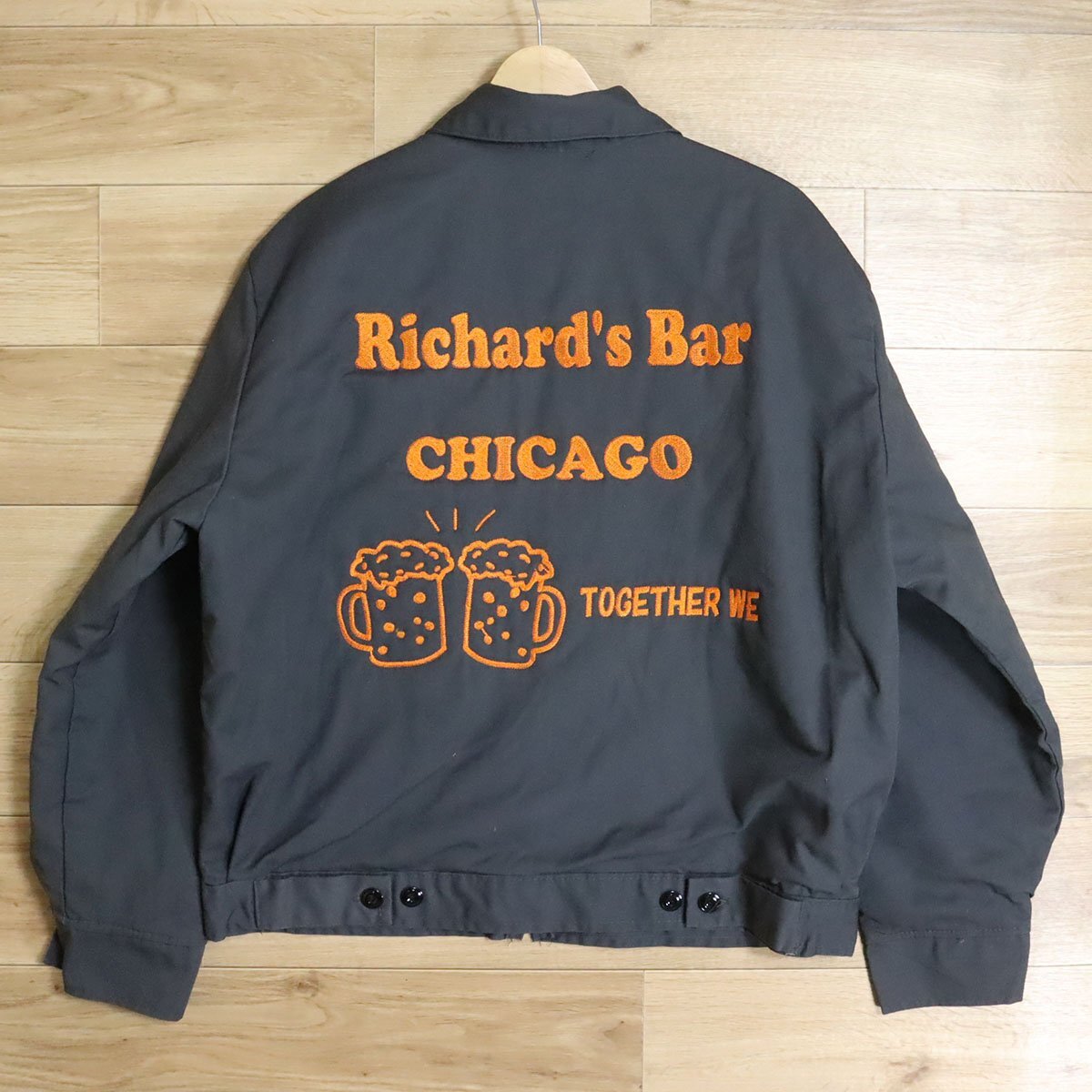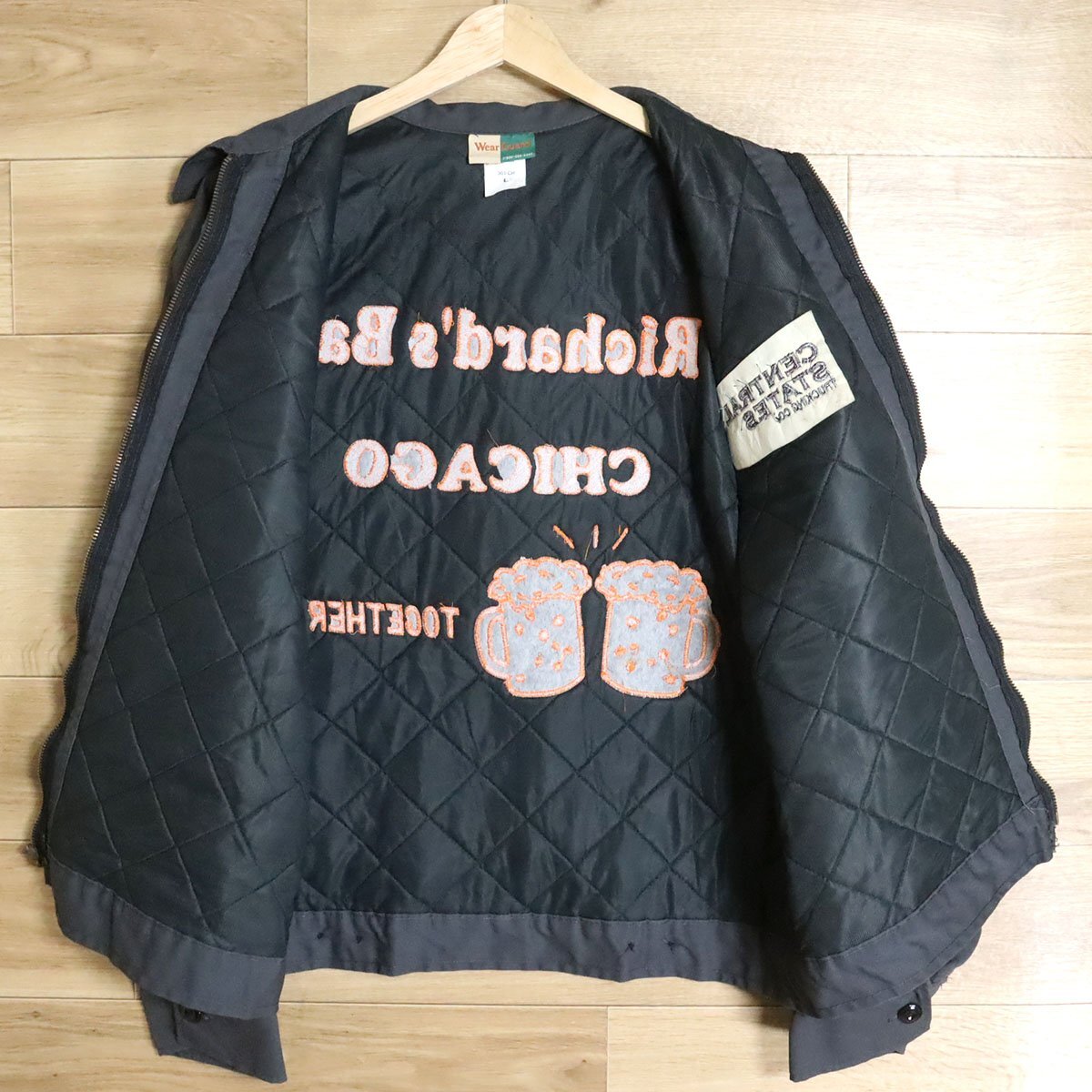?12T/D9.27-2 アメリカ古着 WearGuard ワークジャケット L バック刺繍 Richard‘s Bar ビール メンズ ジャンパー