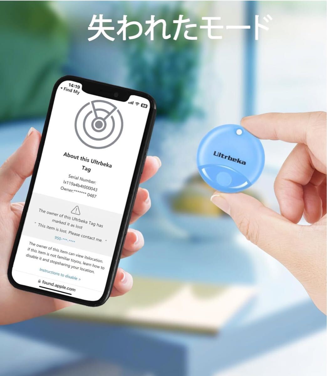 紛失モード設定により、他のAppleデバイスが検出すると自動通知。グローバルネットワークで迅速に探せます。