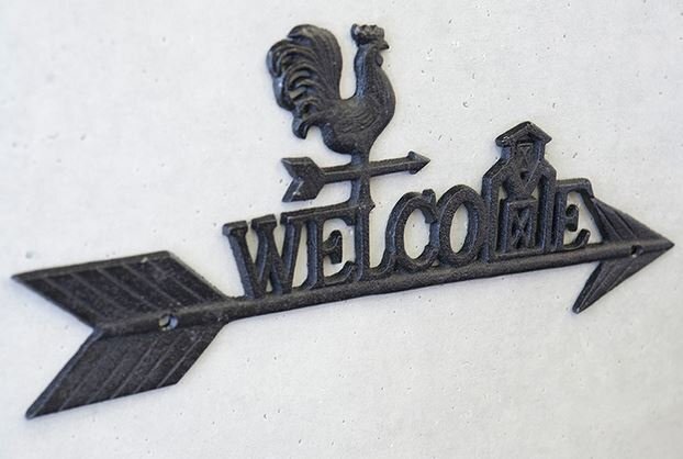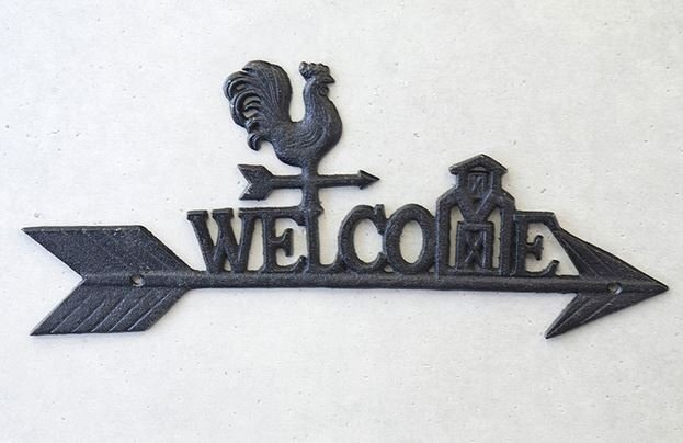 輸入雑貨 ウェルカムサイン WELCOME ルースター キャストアイアン リビングスタジオ 直輸入 風見鶏 ニワトリ アンティーク風 CV21-004