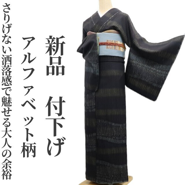 tomihisa 新品 アルファベット柄 着物 正絹 仕付け糸付”さりげない洒落感で魅せる大人の余裕”付下げ 6803
