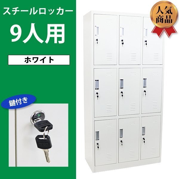 | 商品名 | 送料無料 ロッカー おしゃれ スチールロッカー 9人用 ホワイト 鍵付き スペアキー付き 3列3段 スチール製 収納 オフィス 事務所 会社 店舗 病院 学校 業務用 スリム かぎ付き 更衣ロッカー 更衣室 オフィスロッカー スチールキャビネット 白 10-011wh 10-011newwh |