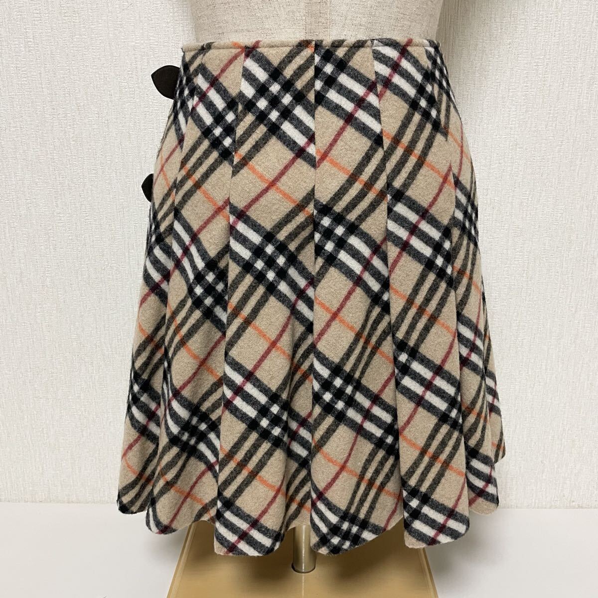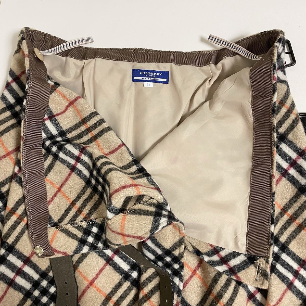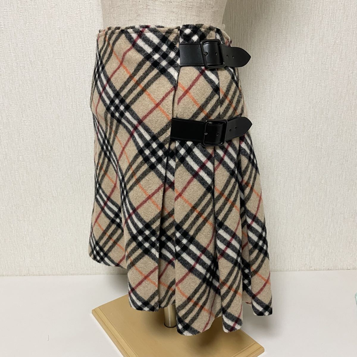 即決☆BURBERRY バーバリー ブルーレーベル カシミヤ ウール ノバチェック プリーツ 巻きスカート レザーベルト 36 美品 S ラップスカート