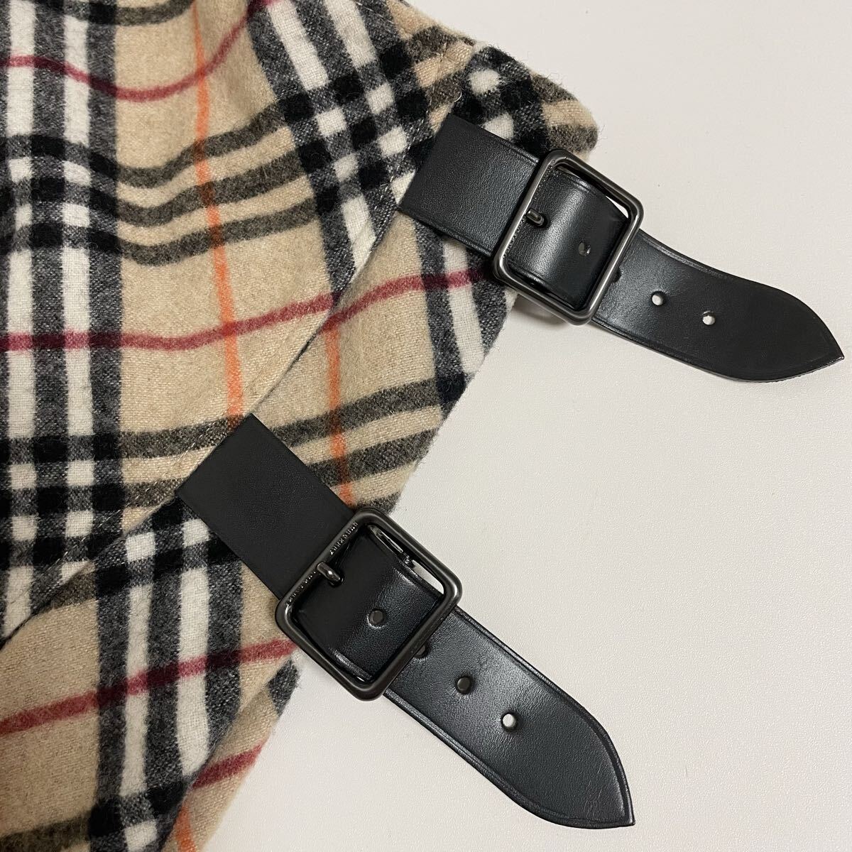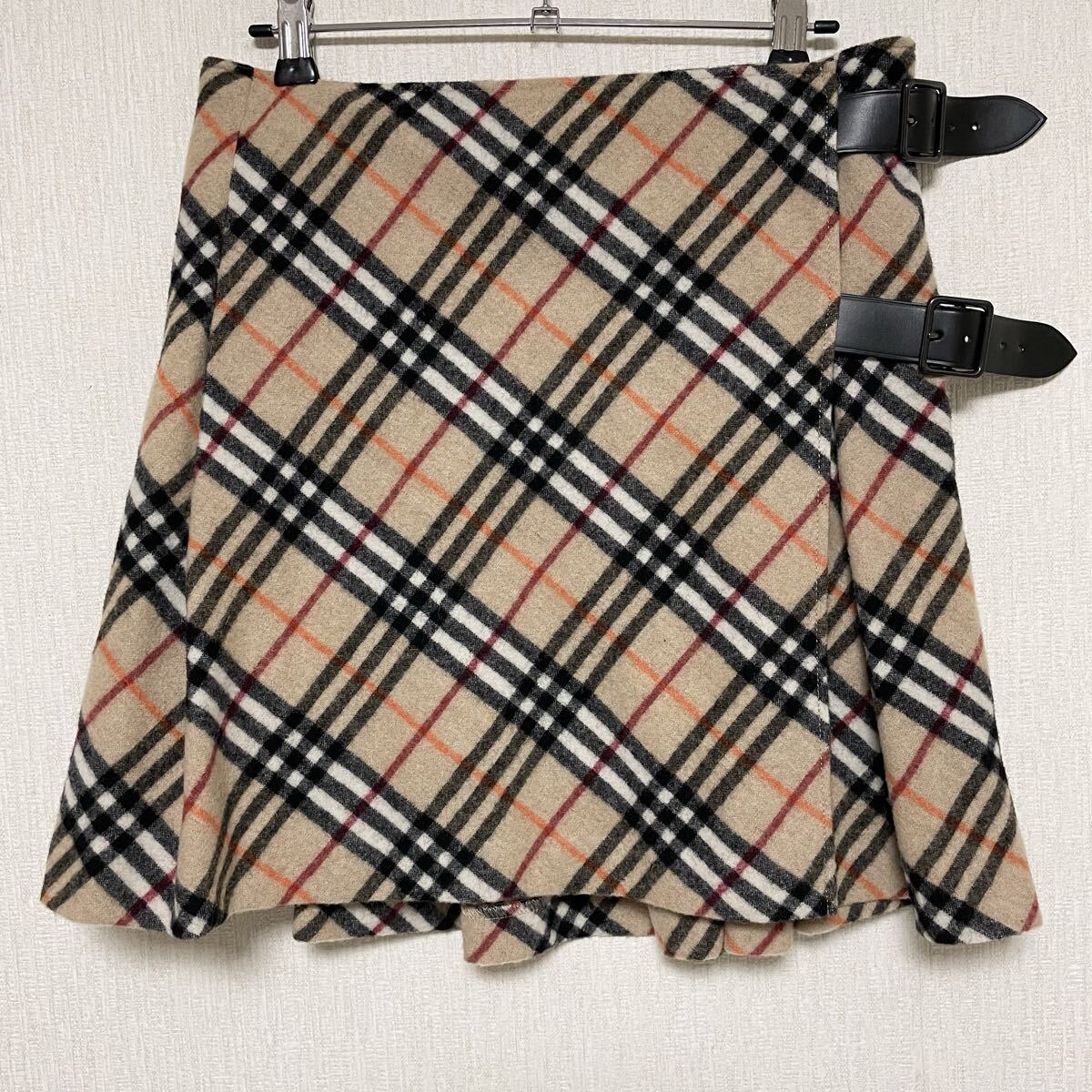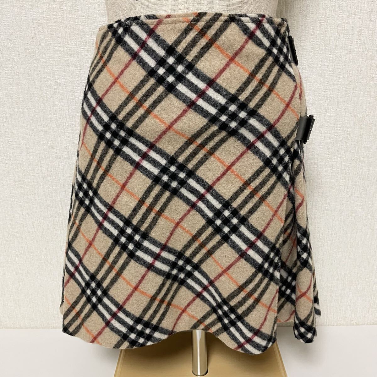 即決☆BURBERRY バーバリー ブルーレーベル カシミヤ ウール ノバチェック プリーツ 巻きスカート レザーベルト 36 美品 S ラップスカート