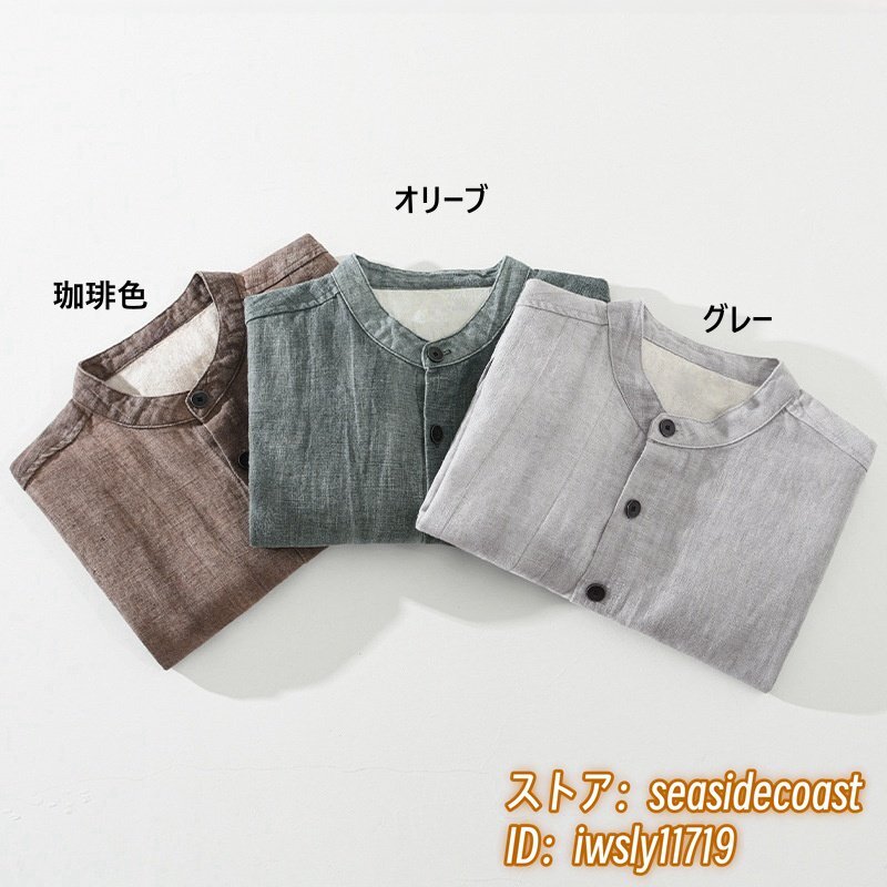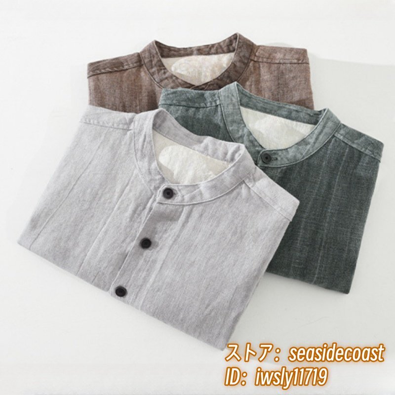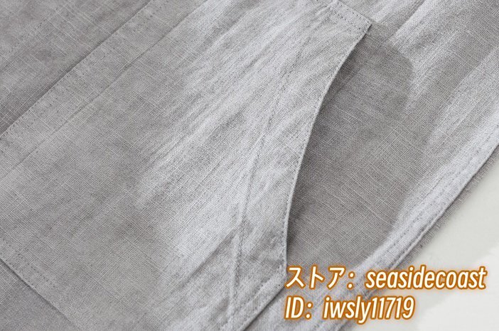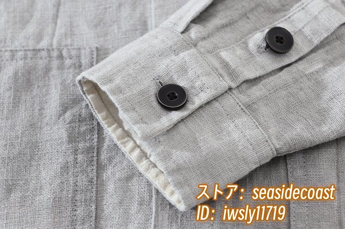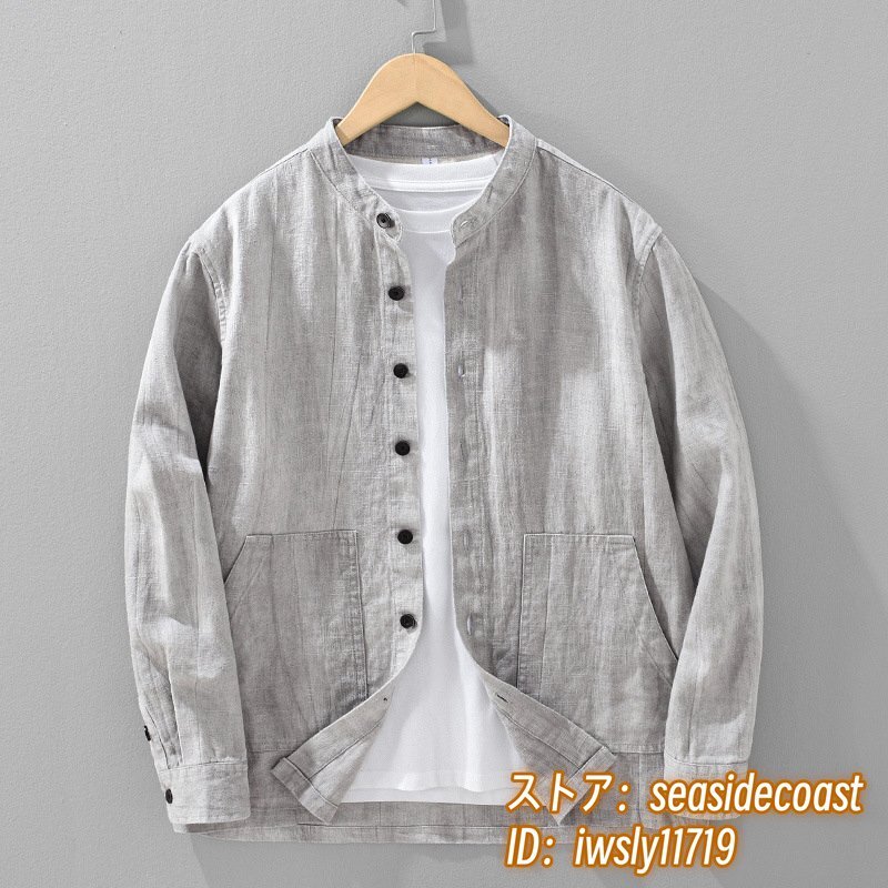 極美品*ジャンバー メンズ リネンジャケット 立ち襟 綿麻 ブルゾン 長袖シャツ ヴィンテージ ブルゾン メンズシャツ アウター グレー M