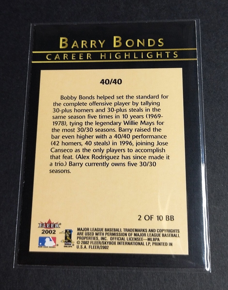MLB 2002年FLEER バリー・ボンズ(ジャイアンツ) CAREER HIGHLIGHTS 40/40 No,2 OF 10 BB。Giants BARRY BONDS