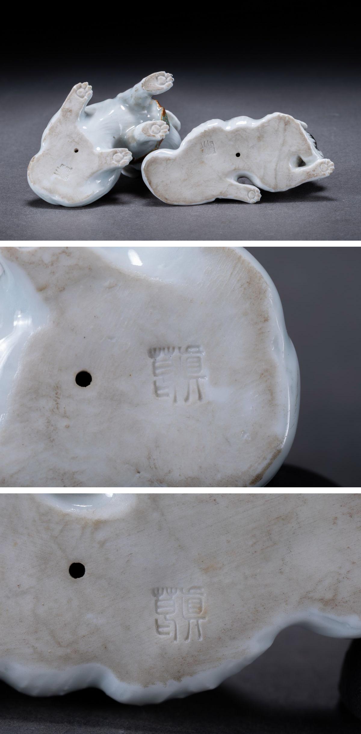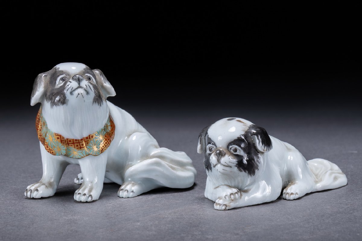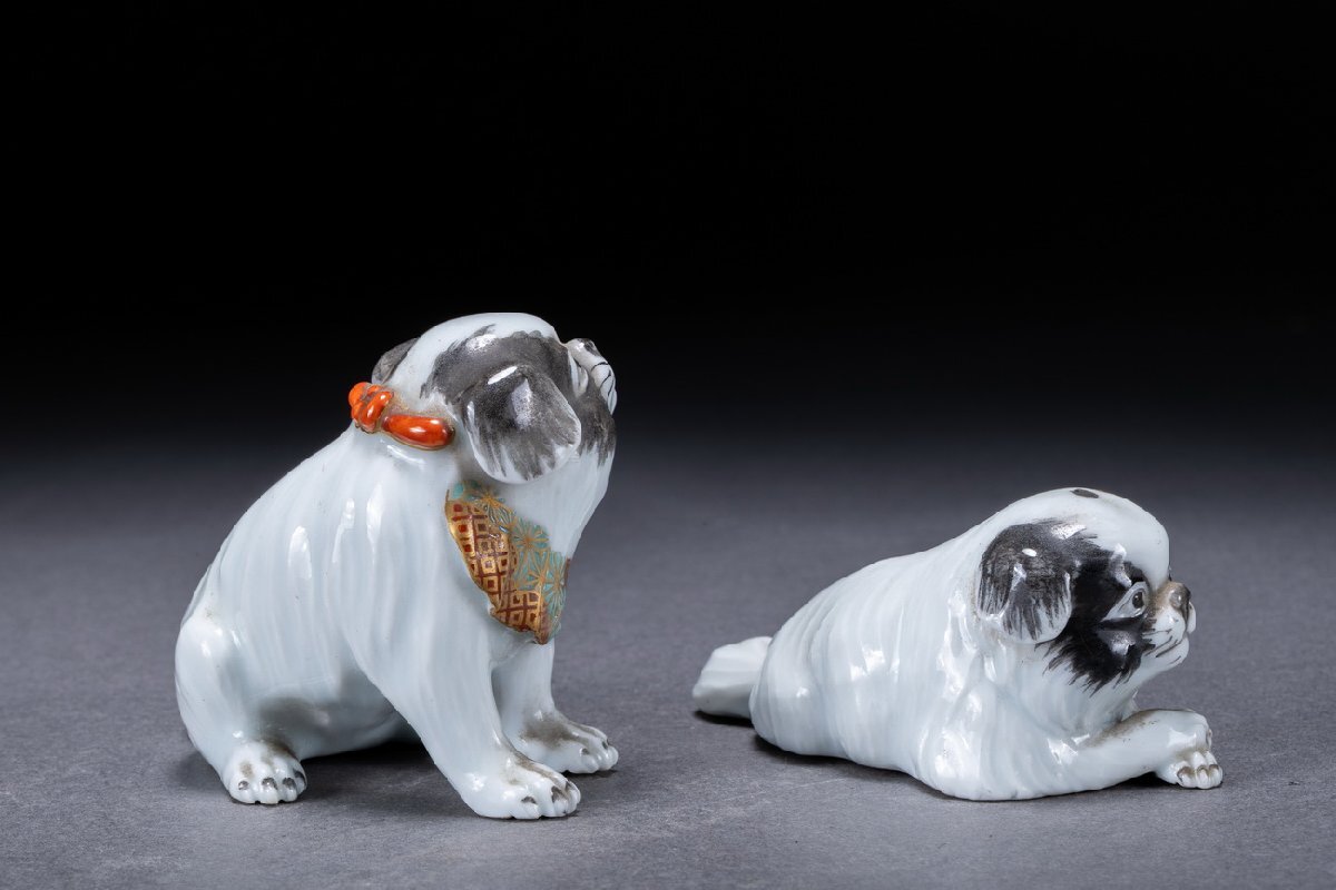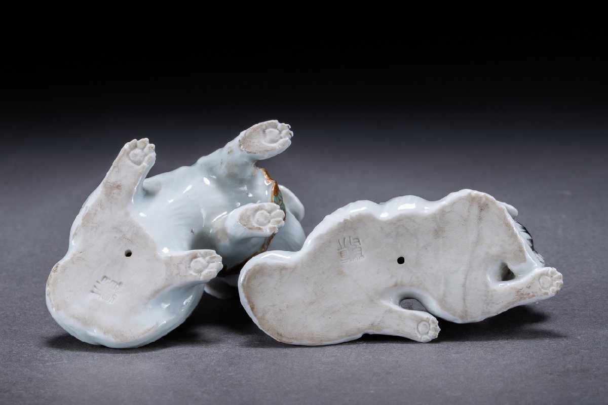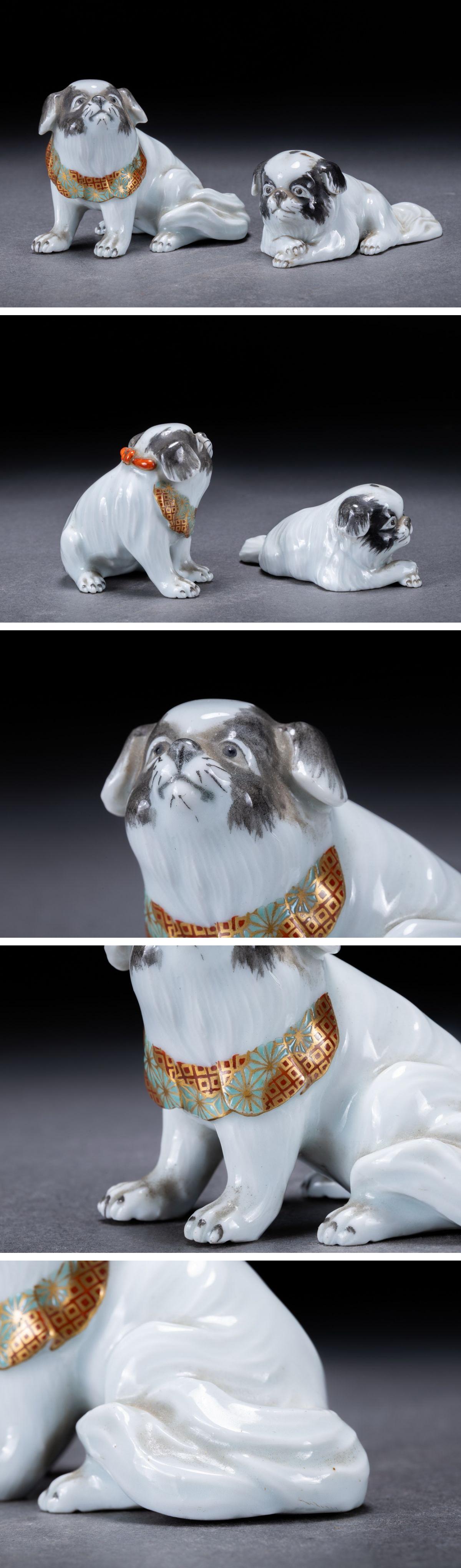【華】時代舊藏 時代物 京焼「真葛香山」造 子犬一双 希少 時代物 古美術 骨董品A25070020-YV
