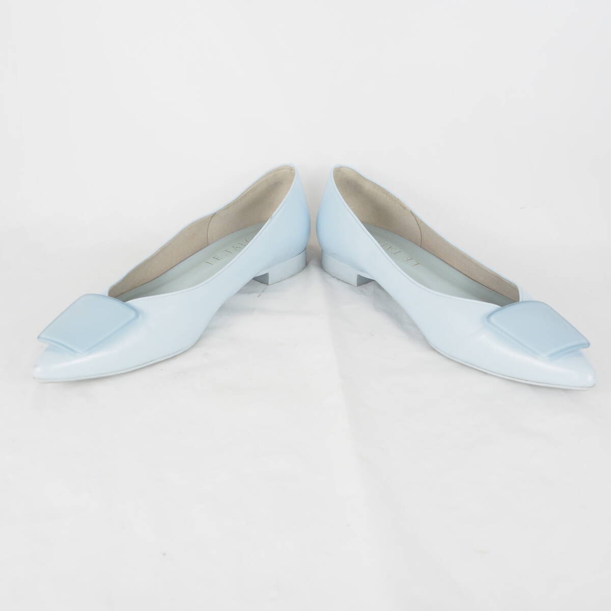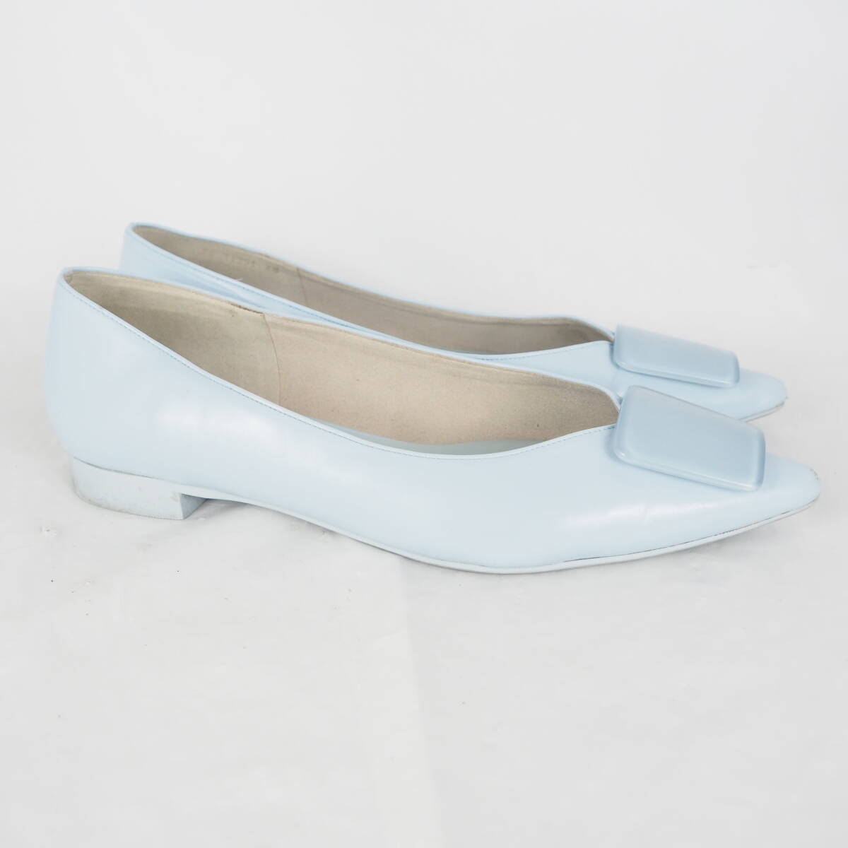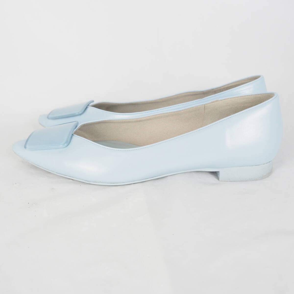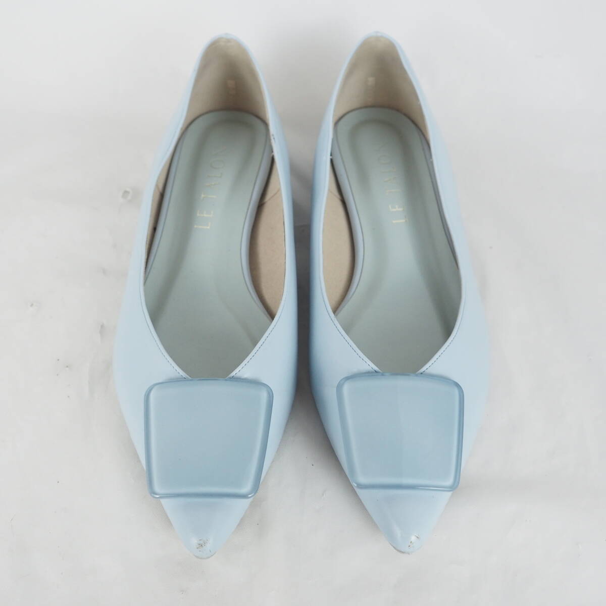 | ページをご覧いただきありがとうございます^^靴、ブーツを中心に出品しております。 淡いブルーカラーに大きめのスクエアモチーフがポイントとなった上品な一足です。 フラットに近いローヒールで歩きやすく、デイリーから通勤、ちょっとしたお出かけまで幅広くコーディネートできます。 爽やかで女性らしい足元を演出してくれます。 ☆商品詳細☆