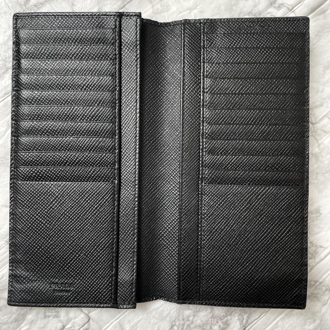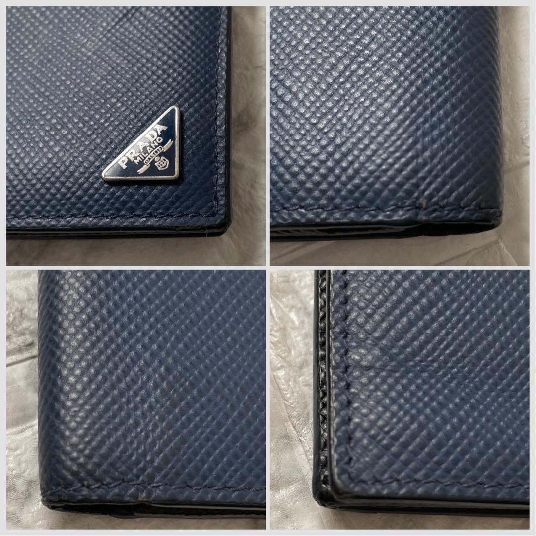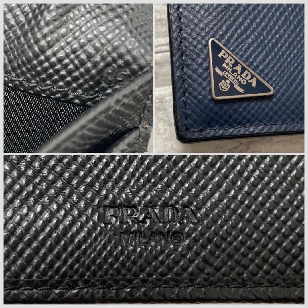 極美品 PRADA プラダ トライアングルロゴ サフィアーノレザー 二つ折り 長財布 ネイビー ブラック メンズ ビジネス