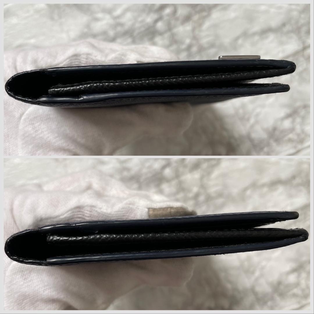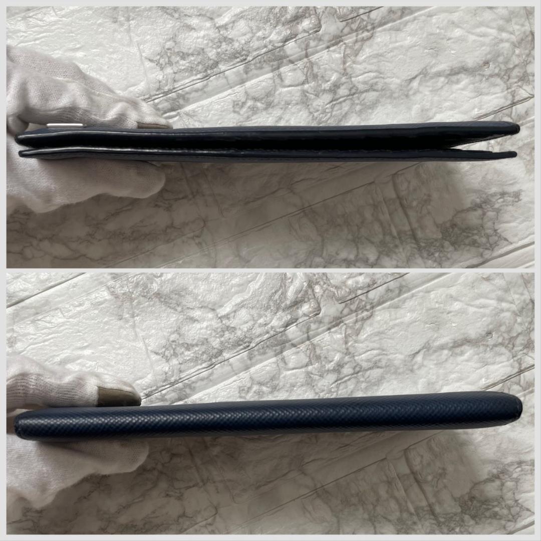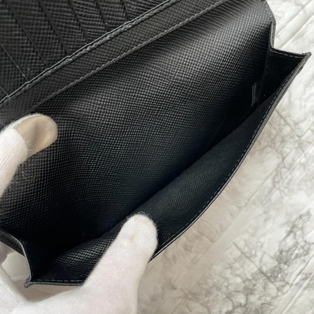 極美品 PRADA プラダ トライアングルロゴ サフィアーノレザー 二つ折り 長財布 ネイビー ブラック メンズ ビジネス