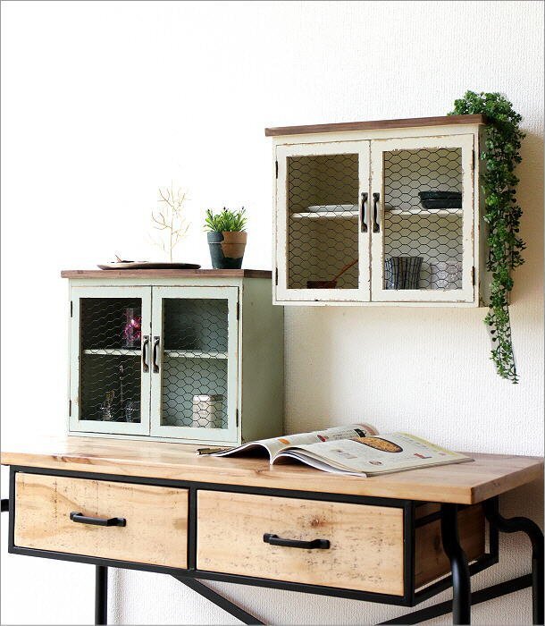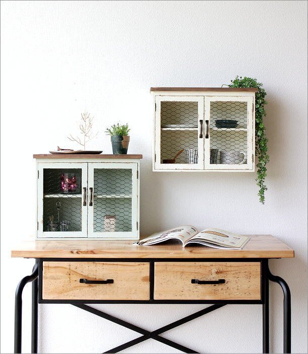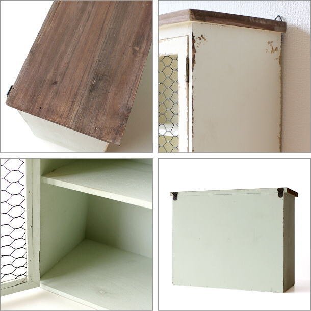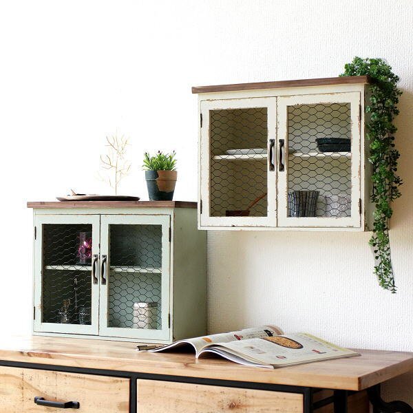| こちらのページでは【Aカラー】のみの販売です アンティークなペイント加工と 柔らかな色味がインテリアのポイントになる チキンワイヤーの扉付きキャビネットは 壁掛けにも出来る2wayタイプ 奥行が広すぎず、 スパイス類やカップなどを 収納するのに便利なサイズです 上部のラックスペースには 小さな鉢植えを ディスプレイしても似合いそうです 商品名 : レトロ風ウッドウォールキャビネット 商品番号 : hbr1638 全体サイズ(cm) : 幅40×奥行17.5×高さ32 棚サイズ : 上)幅37×奥行14.5×高さ13.5 下)幅37×奥行14.5×高さ15 天板サイズ : 幅40×奥行17.5 材質 : 木 アイアン 重量 : 約1.5kg 生産国 : 中国 ※塗装の色ムラ・剥げ・小キズ・小さな欠け・隙・塗装におい等ございます。また、天然木の節穴やささくれ等をわざと残して活かした商品です。均一な塗装や機械による平面的な仕上げではないため個体差が見られますが、商品の個性としてご理解の上ご検討ください。 ※マグネット開閉式です ※僅かなガタつきが見られる場合があります ※ディスプレイによる色の違いはご了承下さい |