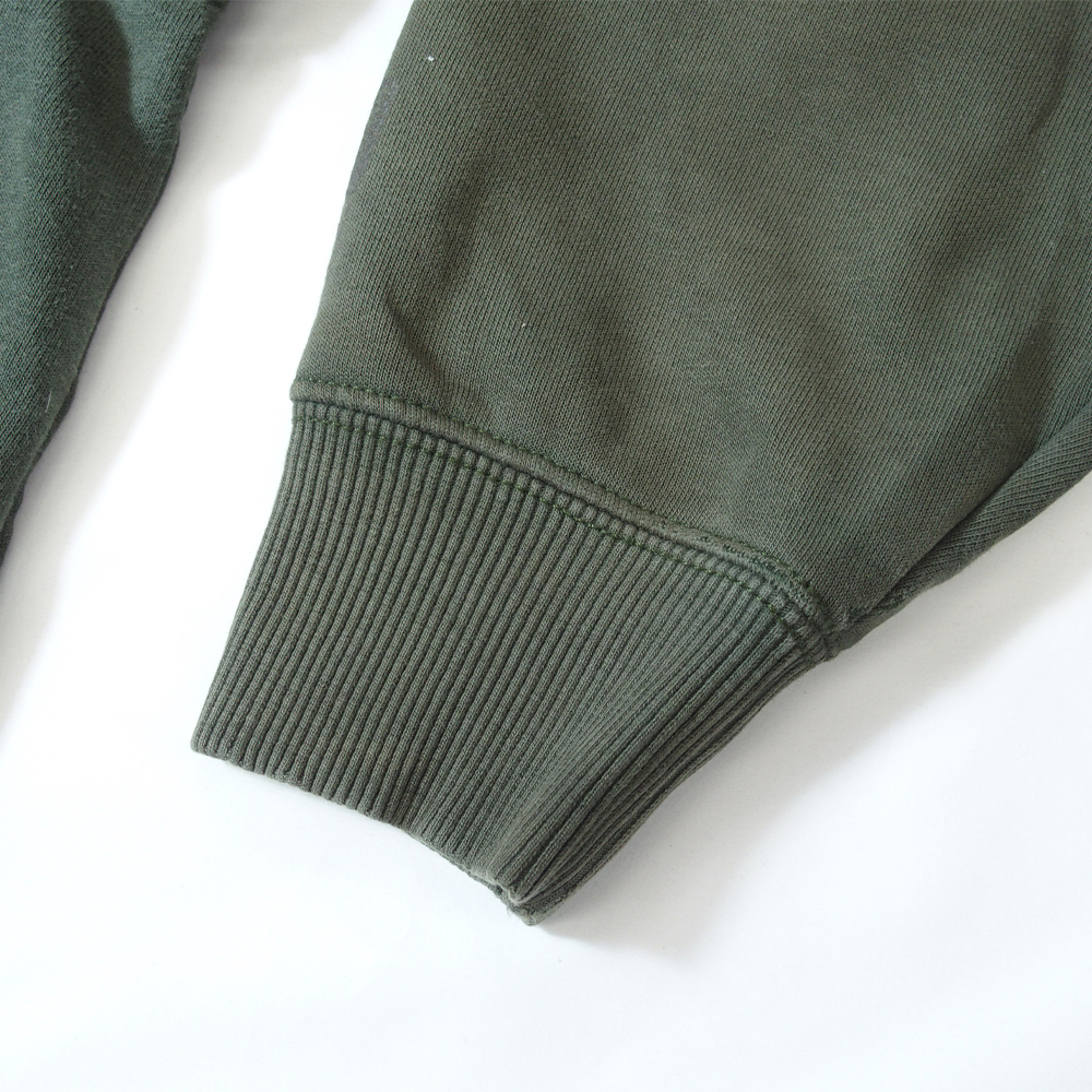 フロントのカンガルーポケットの左上にブランドタグを配したシンプルな仕上がり。