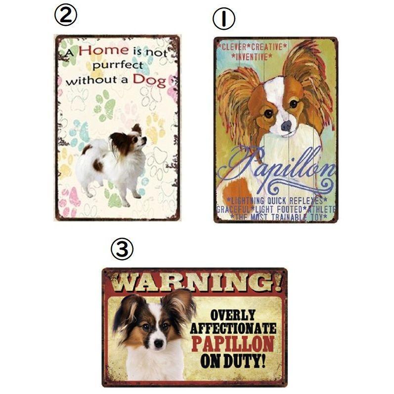 【送料無料】パピヨン ① メタルサインプレート【新品】