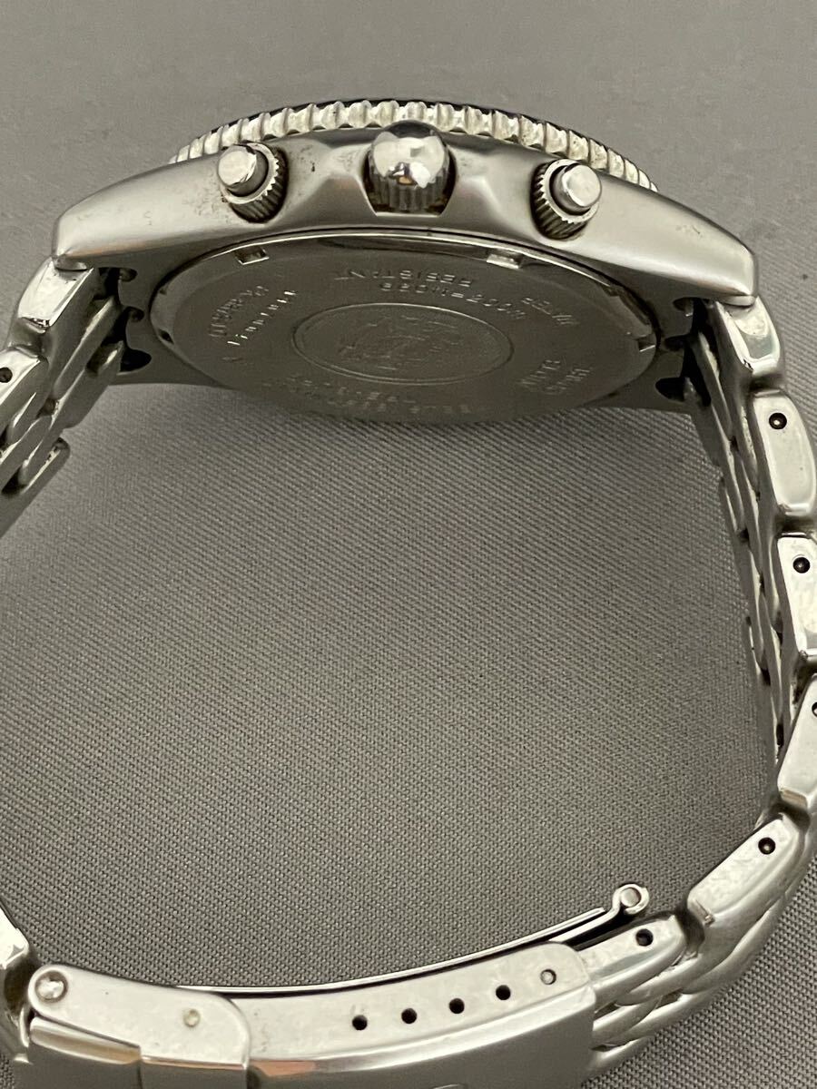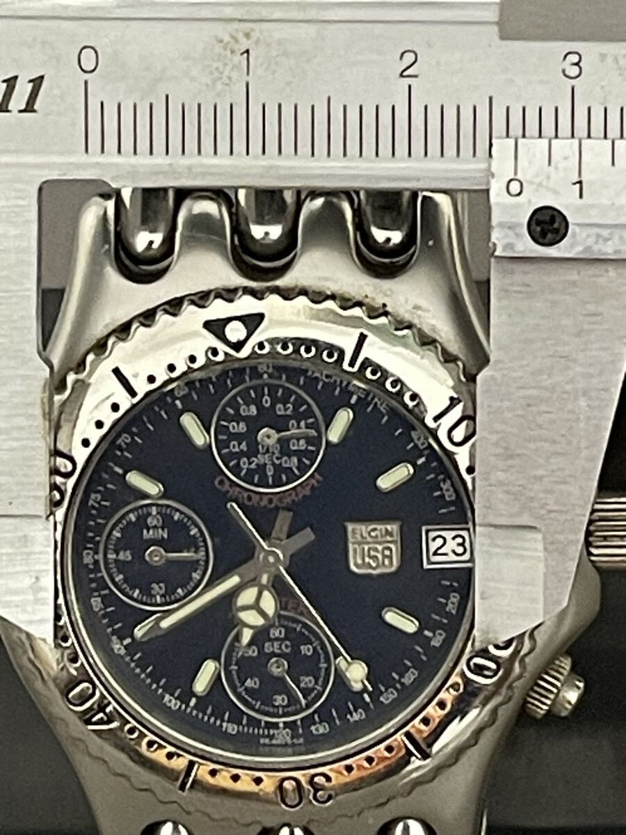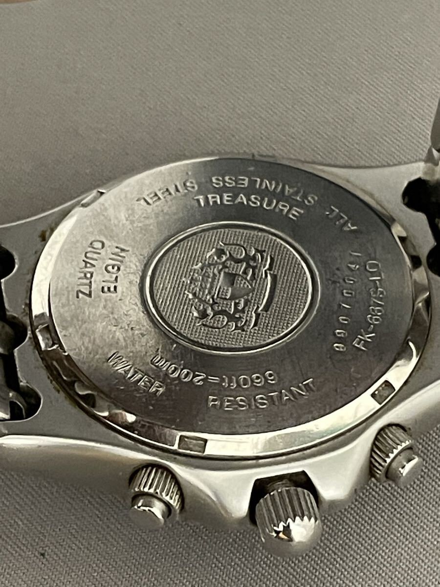 ELGIN エルジン クォーツクロノグラフメンズ腕時計です。時計動いていますが詳しく動作確認してないためジャンク品扱いでお願いします。ノウクレームノウリターンでお願いします。