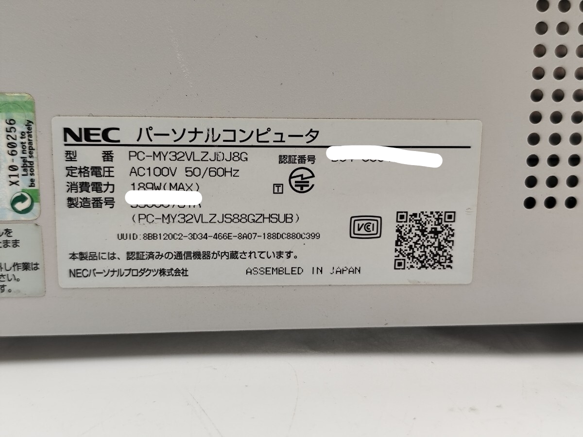 y1146 NEC Mate PC-MY32VLZJDJ8G CPU不明 メモリ不明 ストレージ無 不動 ジャンク