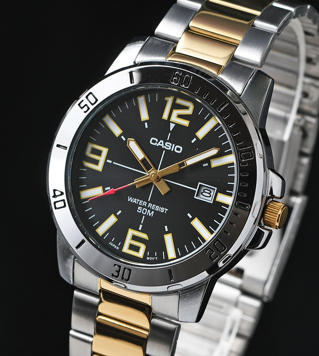 逆輸入カシオ最新作 シンプルで視認性高く飽きない 新品1円 ゴールド&シルバー 50m防水 腕時計 CASIO メンズ 激レア日本未発売