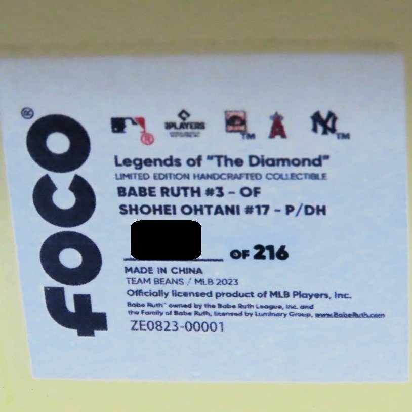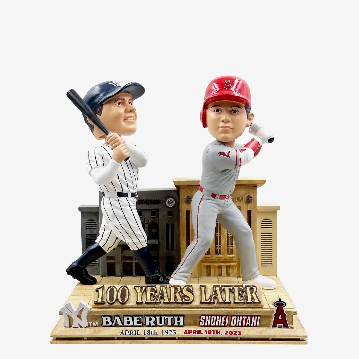 大谷翔平+ベーブルース 100年の時を超えた4月18日のNY ダブル・ボブルヘッド人形 新品箱入り 216個限定 バブルヘッド 首振り人形
