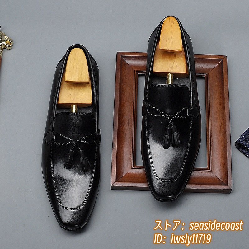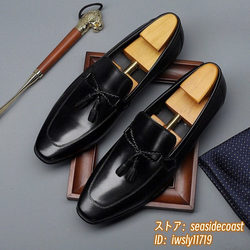 定価10万★メンズシューズ ビジネスシューズ 高級牛革 職人手作り 本革レザーシューズ 紳士靴 革靴 タッセルローファー ブラック 24.5cm