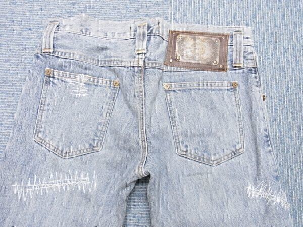 商品説明:ドルガバのジーンズが古着で出回ってますが、このSDP49は名作と言われるカッテイングとリペア加工のカッコ良さは最高です。裾は切りっぱなしでホツレ止めしてあります。サイズ44は滅多に出ません!