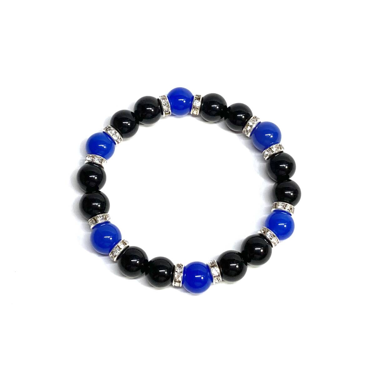 モリオン&青瑪瑙 パワーストーン ブレスレット 天然石ブレス (シルバー) 10mm メンズ・レディース 厄除け 勉強 受験 ☆