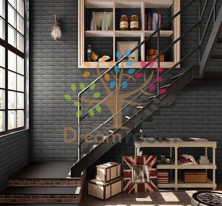 【3枚】高品質 3D クッション 壁紙シール ブラック/墨黒 レンガ調 糊付き はがせる クロス 70×77cm アンティーク 耐水 抗菌 落書き 傷防止