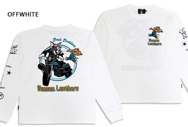 上質なレザーを使って生み出された数々のアイテムがバイカーに大人気のvansonから「TOM&JERRYコラボ 天竺ロングTシャツ(TJV-2530)」のご紹介です。