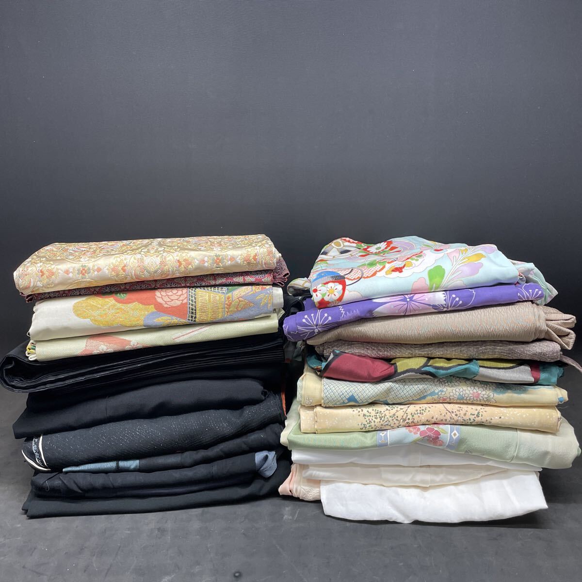 G3306 【着物 リメイク素材用 まとめて】 中古 シミ有 訪問着 礼服 浴衣 襦袢 帯 刺繍 長期保管品 現状品