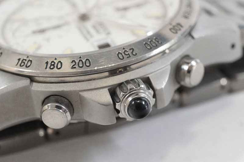 ※右上ボタンで秒針が止まる/動きます。右下ボタンで秒針リセットしましたが、詳細仕様は未確認となります。ご了承ください。