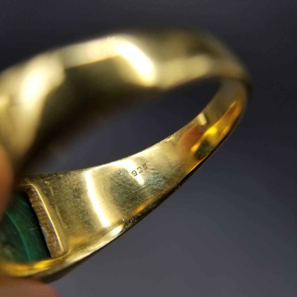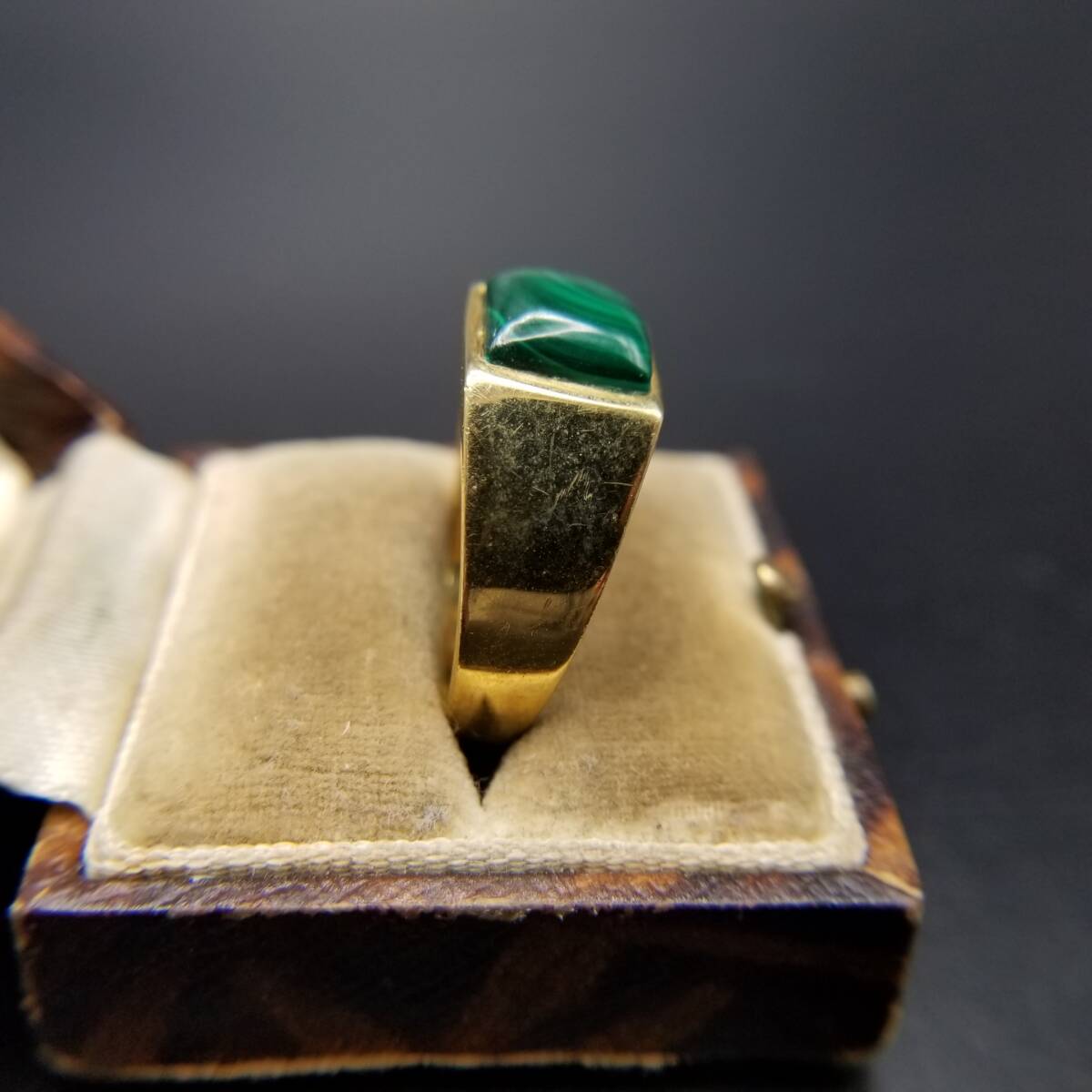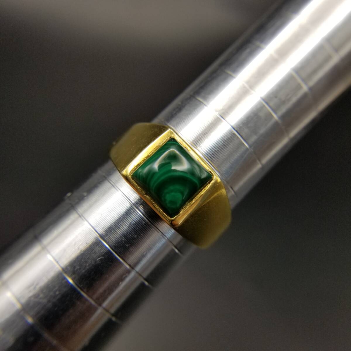 マラカイト スクエア カボション 925シルバー ヴィンテージ シグネット リング 指輪 銀 ゴールドプレート シンプル メンズジュエリー R16-Q