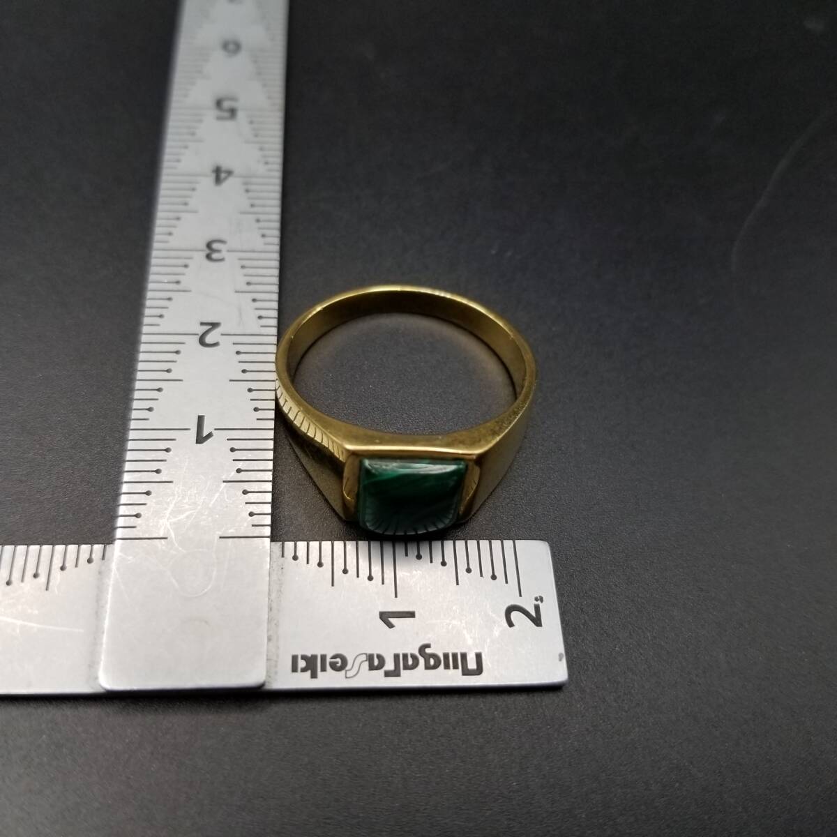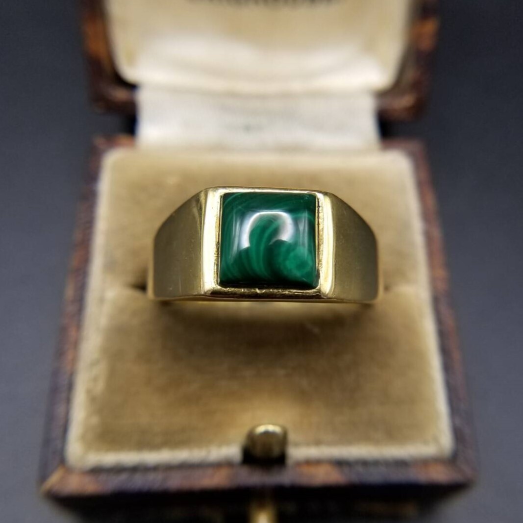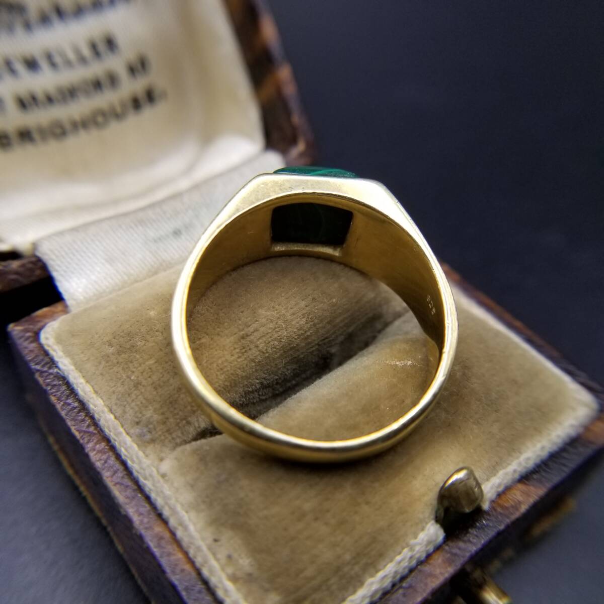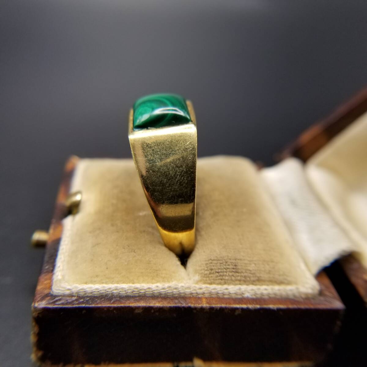 マラカイト スクエア カボション 925シルバー ヴィンテージ シグネット リング 指輪 銀 ゴールドプレート シンプル メンズジュエリー R16-Q