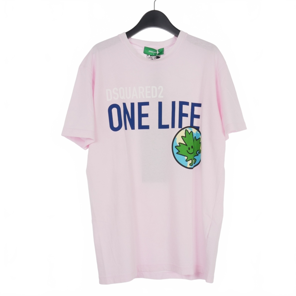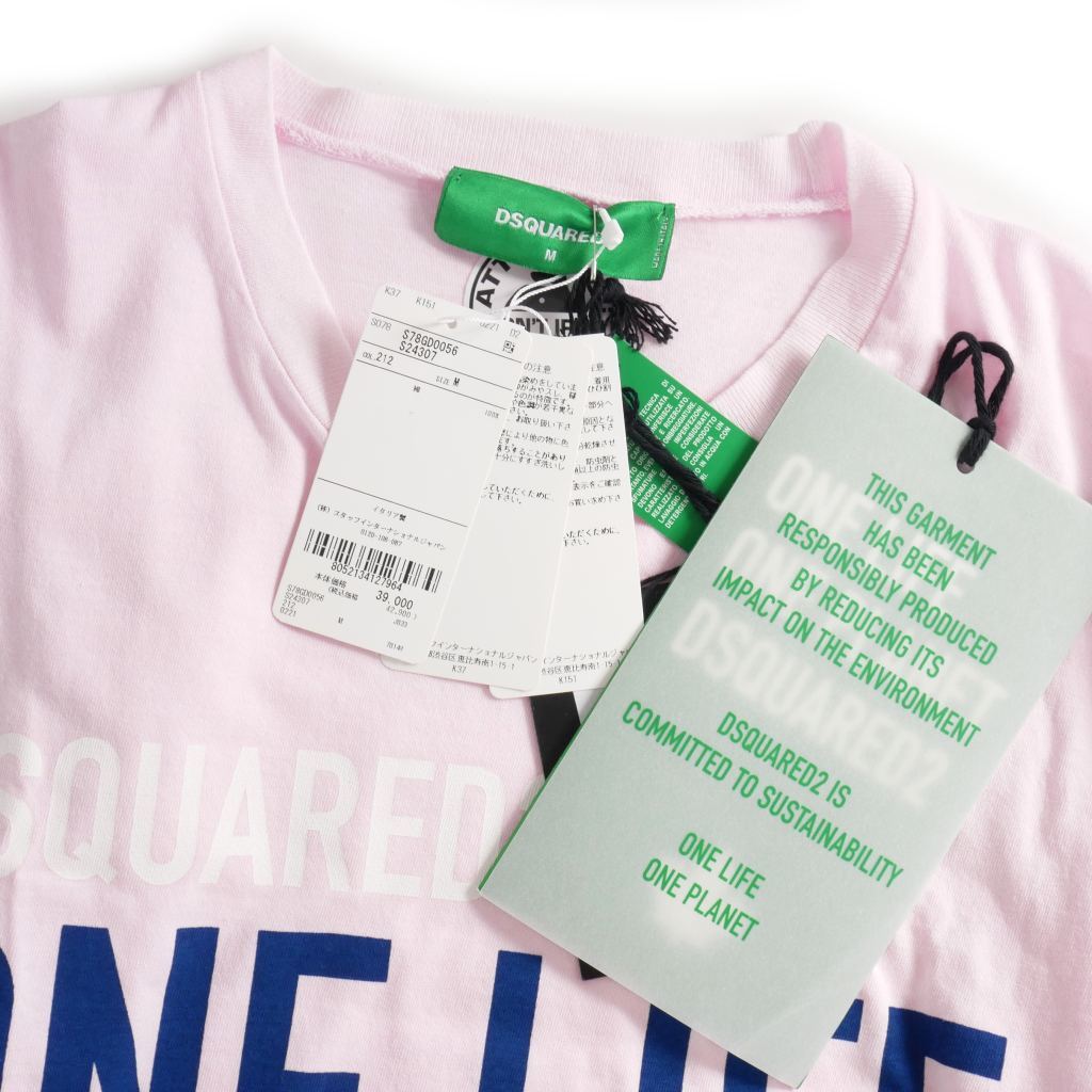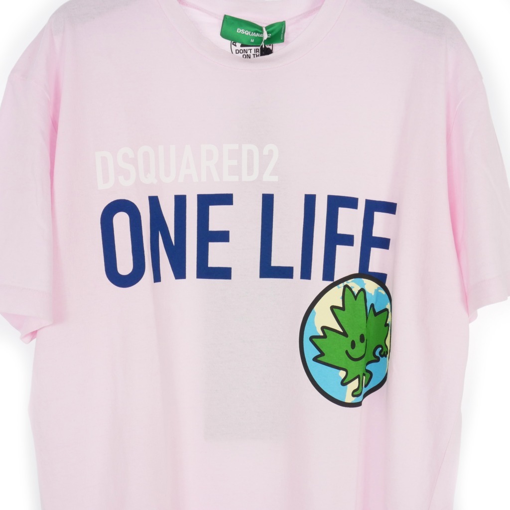 ディースクエアード DSQUARED2 22SS ONE LIFE ONE PLANET プリント Tシャツ カットソー 半袖 M ピンク S78GD0056 国内正規 メンズ