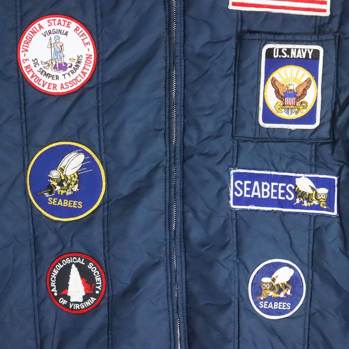 D4S/Y8.4-4 USA製 SPRUCE CREEK SPORTSWEAR 中綿ベスト ワッペンカスタム 刺繍 ジップアップベスト ビッグサイズ ネイビー 古着