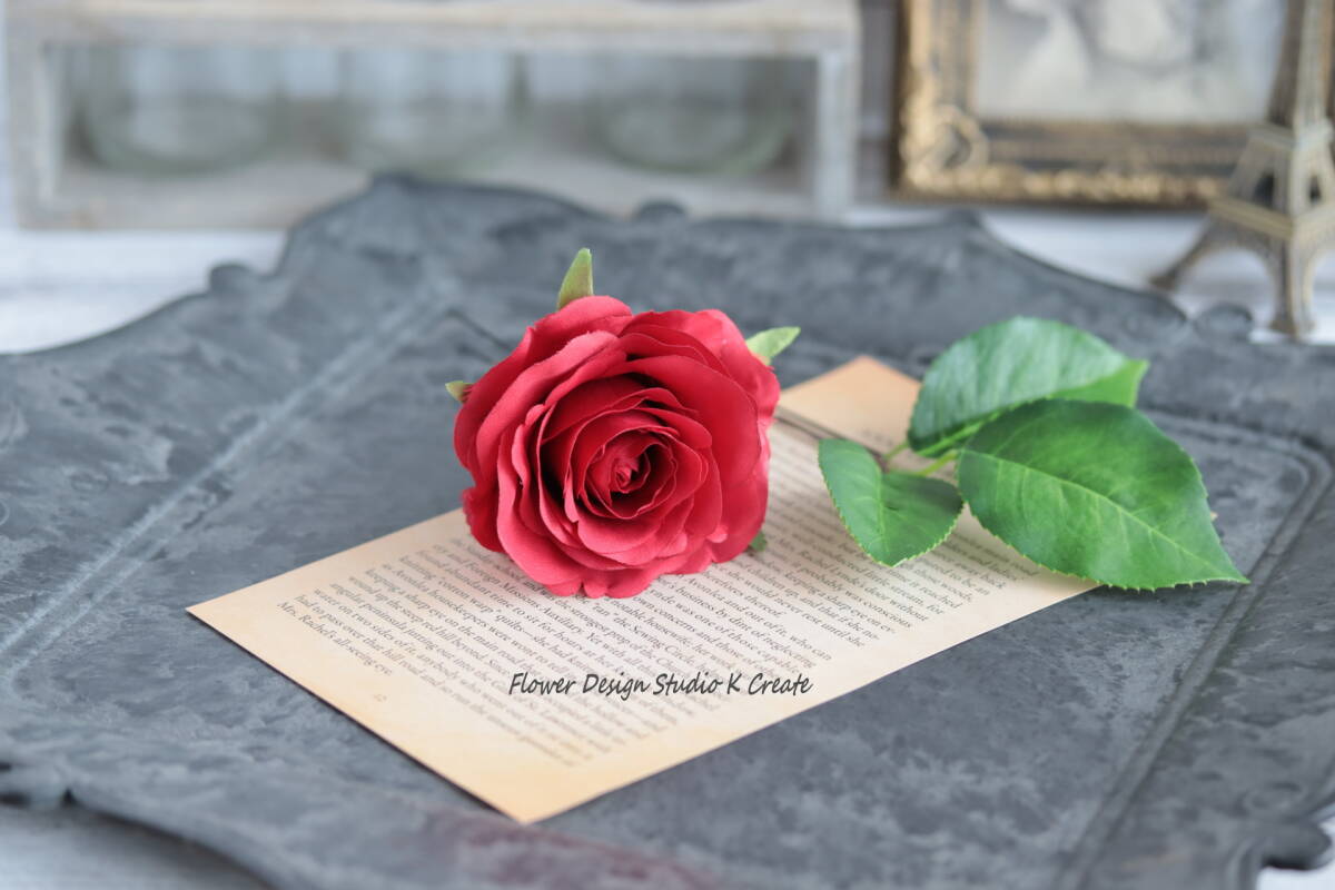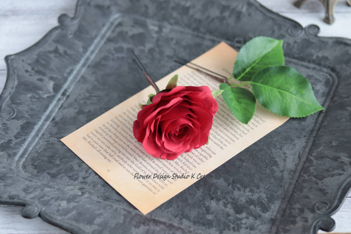 | ハイクオリティな、 生花の様に美しい、 アーティフィシャルフラワーの薔薇です。 お花の大きさは、花径:70~80mm前後です。 薔薇と葉っぱの2点セットです。 薔薇の花びらは、起毛の無い、 ソリッドな表面感の花びらになります。 薔薇と葉っぱは、各パーツに分かれているので、 お好きな場所に挿す事ができます。 フラメンコなどのダンスや、 ピアノの発表会、着物髪飾りなど、 赤、黒系のお着物、ご衣裳、ドレスに ワンポイントの髪飾りとしてお使い頂くと、 センスのある 「赤い薔薇の髪飾り」になると思います。 薔薇には、 長さ72mmのロングタイプのUピンを、 葉っぱには、長さ50mmのUピンを 取り付けました。 薔薇は、長めのUピンですので、 落下しない様、深く挿す事が出来ます。 花頭の重さで、回転(ターン)した時に 落下しない様にしました。 (アメピンを使うとより安心です。) 72mm、50mm、どちらも シニョンやアップスタイルなどに、 サロンで最も使われる、 日本製のUピンです。 ロングサイズのUピンは、 滑り止め加工を施しているので、 抜けにくく、 細い毛質の方や、 多い毛束アレンジにも しっかりと留まります。 【サイズ】 *薔薇のお花 1本 縦横:120mm(全長)x70~80mm(花径)前後 *葉っぱ 1本 薔薇のお花の高さは、45mmです。 ●お花:アーティフィシャルフラワー (高級造花/ポリエステル) ★価格は、薔薇と葉っぱの1セットのお値段です。 ●花びらの開き具合の個体差がありますが、 70~80mmの開花した薔薇です。 ●アーティフィシャルフラワーは主に、 大手の卸問屋から直接購入し、 生花に限りなく近い色彩と 質感にこだわってセレクトしています。 ●K CreateのUピンは、 フローラテープが剥がれない様、 コーティング処理を施しています。 #ピアノの発表会 #バレエ髪飾り #社交ダンス #ダンス各種 #rose #コスプレ #パーティー #薔薇の髪飾り #赤 #レッド #結婚式 #ブライダル #ウェディング #前撮り #謝恩会#二次会 #ヘッドドレス #バラの髪飾り #卒業式 #成人式 #パーティー #ヘッドアクセ #振袖 #発表会 #お色直し #入学式 #卒業式 #海外挙式 #赤い薔薇 #社交ダンス #和装 #和装髪飾り #造花 #髪飾り #薔薇の髪飾 #キトリ #カルメン #バレエ #ヘッドピース #頭飾り #花飾り #薔薇 #発表会 #舞台 #コンクール #バラ #ミュージカル #フラメンコ #フローレス #ダンス髪飾り 【ご注意】 作品画像、作品の模倣コピー、 内容、デザイン全般の無断転載・転用、 アイデアの盗用は、お断り致します。 | |