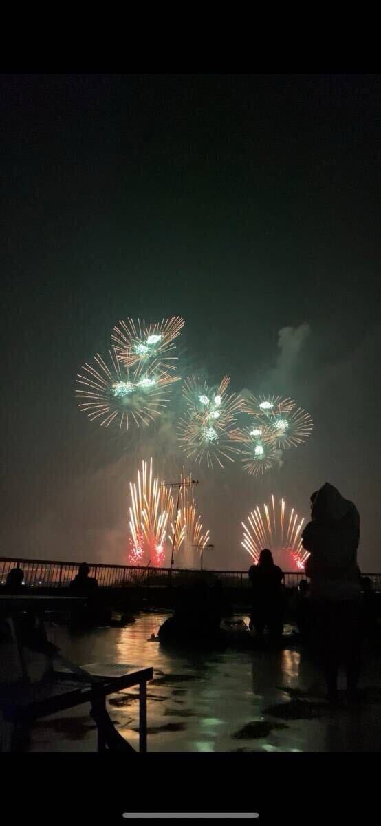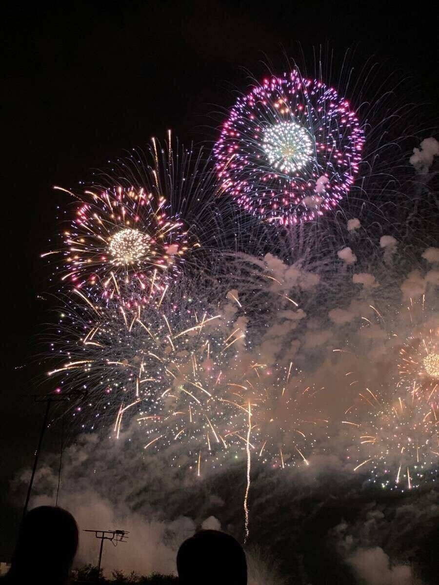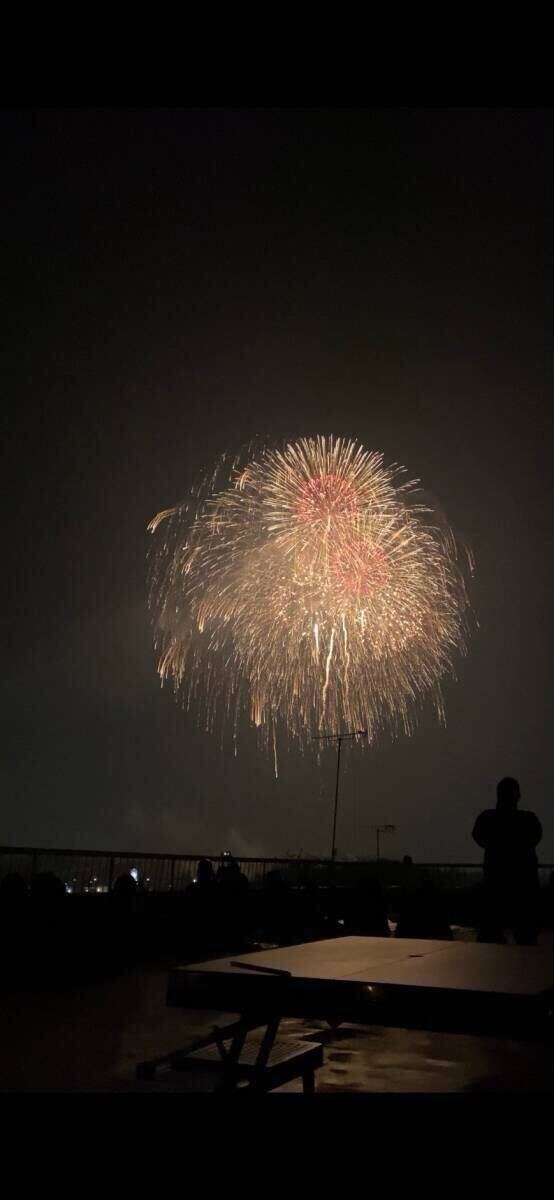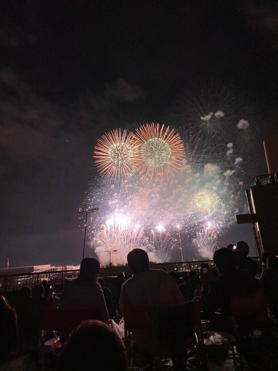 写真の左中央〜下に移っている建物が打ち上げ場所そばのイオンです。川を挟んで反対側にある建物なので(4階部分が屋上)目の前の大迫力で見れます。