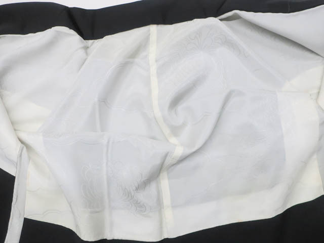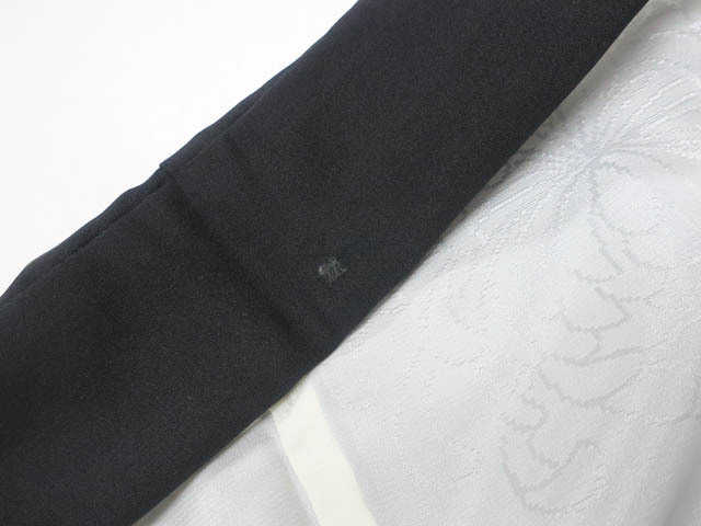 リサイクル商品のため、衿汚れと紐にしみがございますが着用可能なお品です。 地色は 黒です。 1枚目の画像が近いお色かと思われます。 素材は正絹です。 |