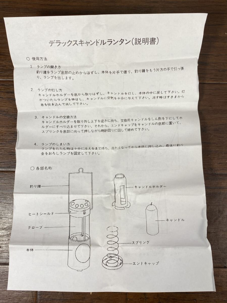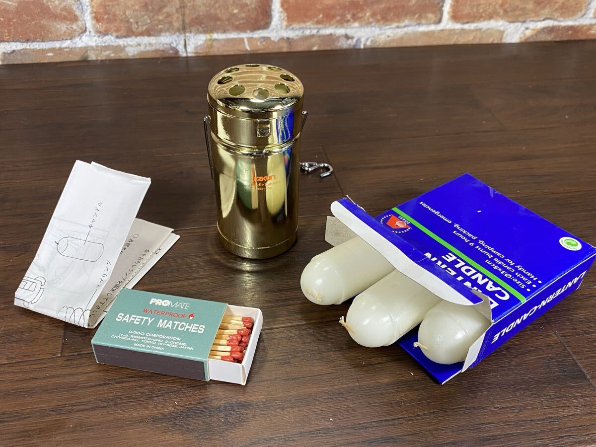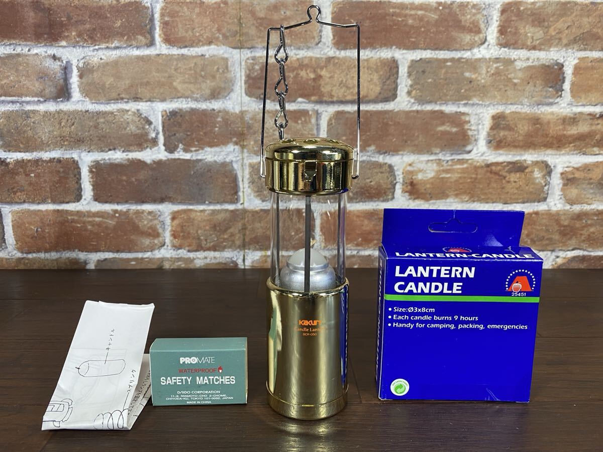 ♪商品説明♪ | v(^_^v)♪当オークションをご覧頂き、有難うございます~♪(v^_^)v ☆未使用 Kakuri キャンドルランタン BRASS CANDLE LANTERN キャンプ アウトドア☆ キャンドルが燃焼するとスプリングで下から押し上げているので長時間の燃焼が可能です。 運搬時にはコンパクトになりますのでソロキャンプなどでも活躍しそうです。 画像の様に予備のキャンドルとおしゃれなマッチと取説が付属いたします。 現状お渡し品となりますのでご了承ください。 よろしくお願いいたします。 | |