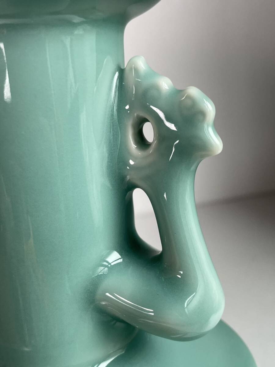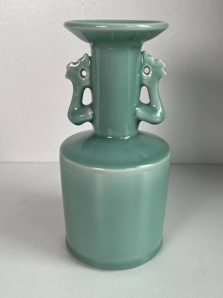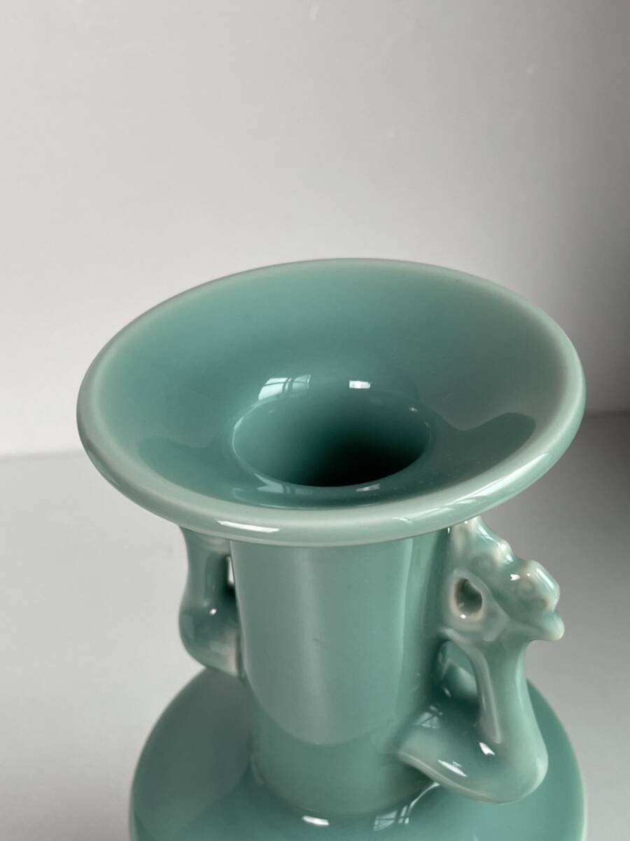 【和美】宗完書付 平安「手塚祥堂」造 鳳凰 耳付 青磁 花生 花瓶 花入 花器 共箱 茶道具 本物保証 22
