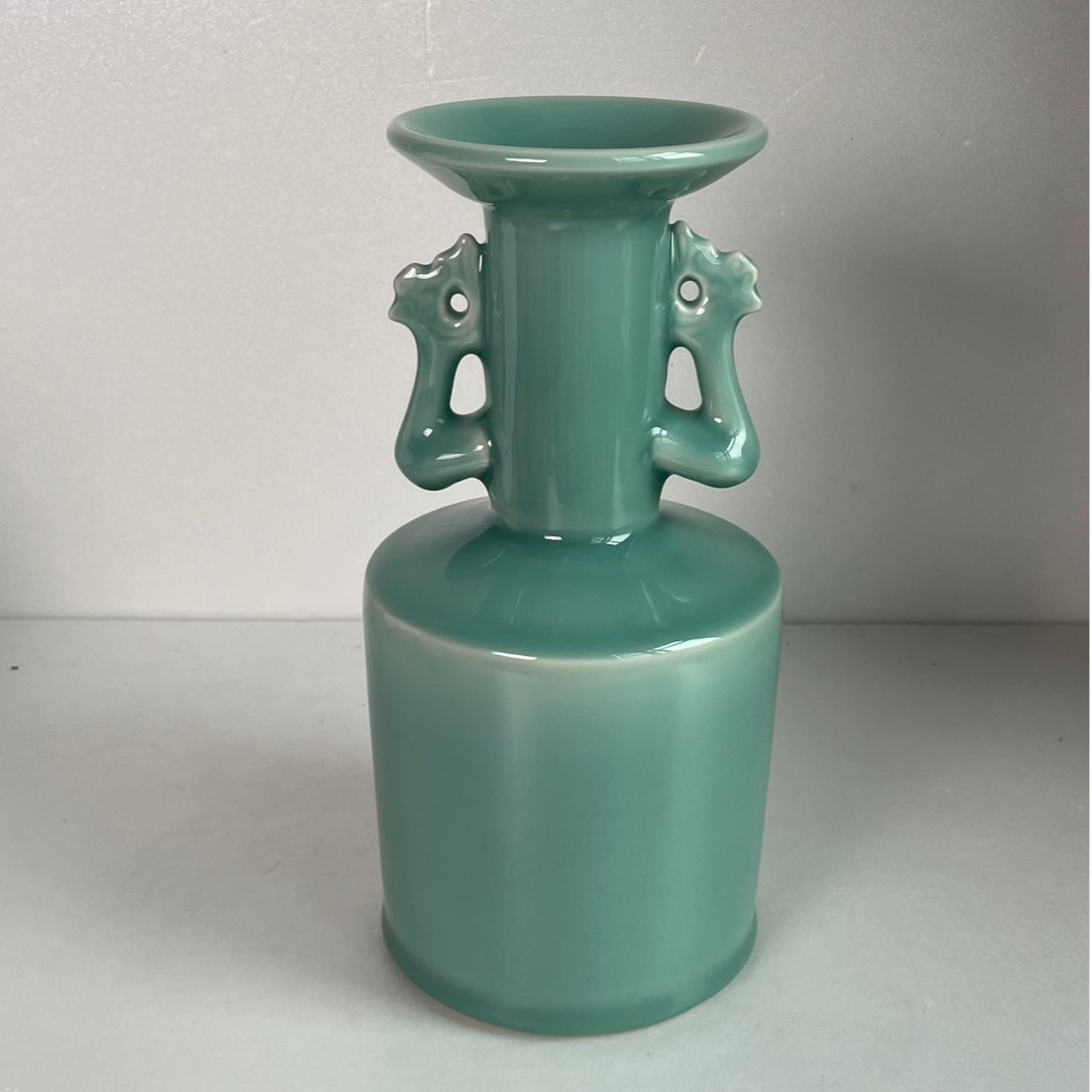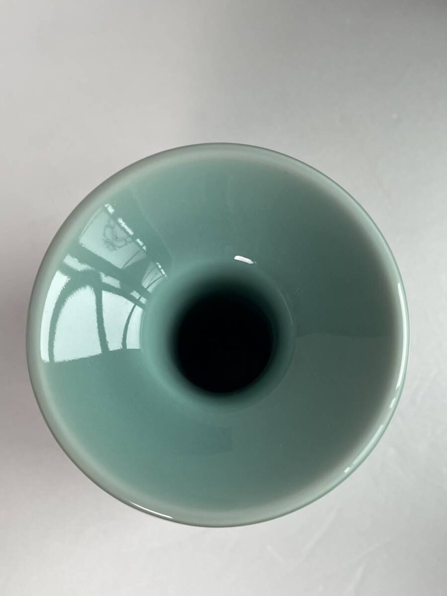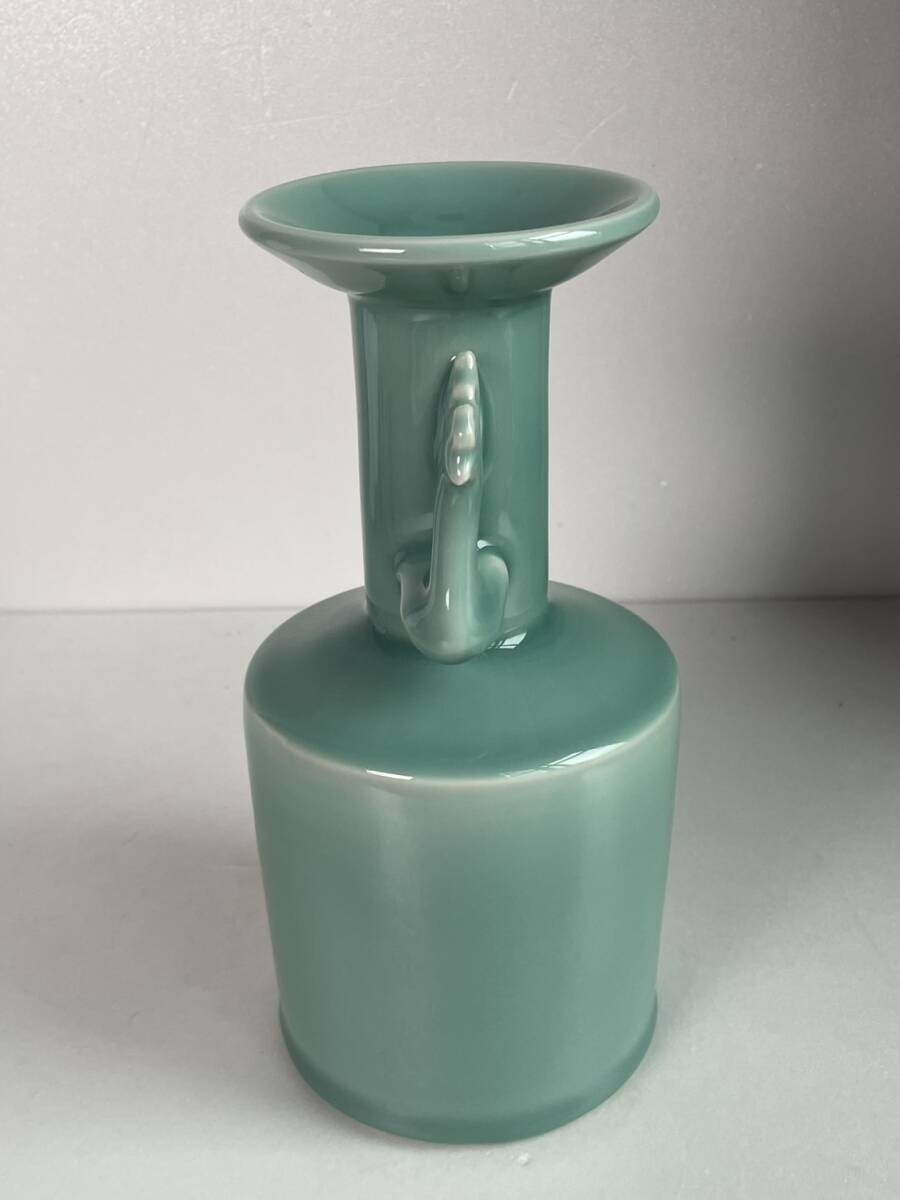 【和美】宗完書付 平安「手塚祥堂」造 鳳凰 耳付 青磁 花生 花瓶 花入 花器 共箱 茶道具 本物保証 22