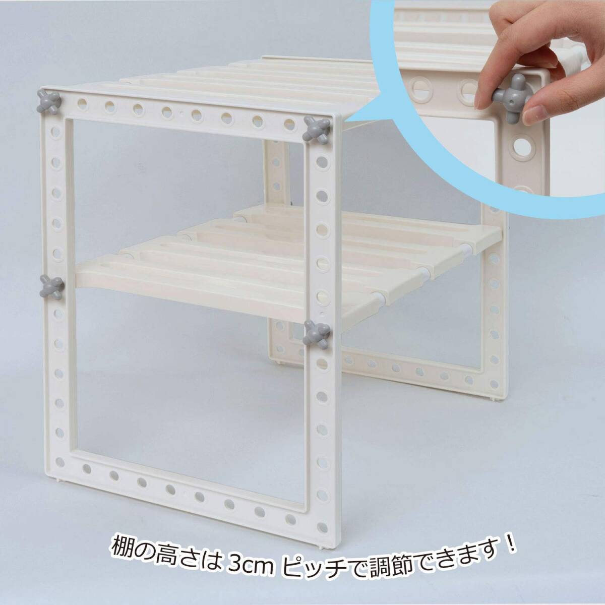 材質 / フレーム:スチロール樹脂、棚板・メネジ:ポリプロピレン、パイプ:スチール(ポリプロピレンコーティング)(樹脂部:ABS樹脂)