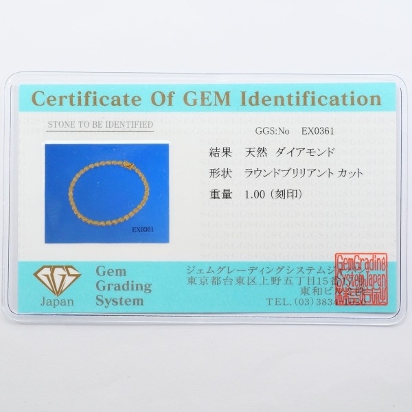 | K18YG ブレスレット ダイヤ 1.00 カード鑑別書 総重量約4.7g 約17.5cm 中古 美品 送料無料 | |