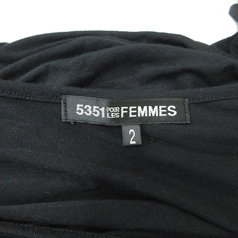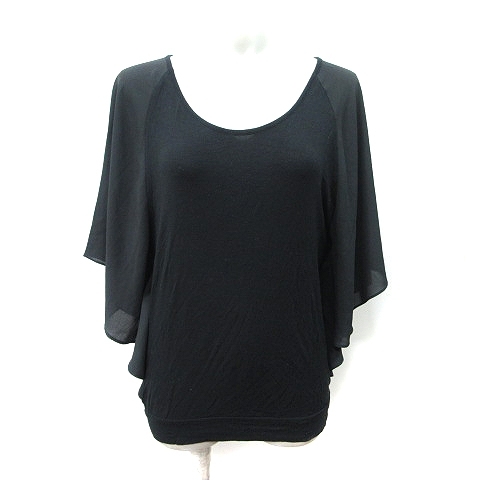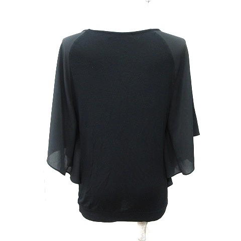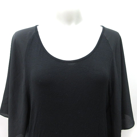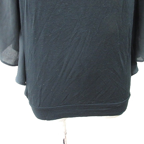 ゴーサンゴーイチファム 5351 POUR LES FEMMES カットソー 切替 シフォン 七分袖 2 M 黒 ブラック /YI レディース