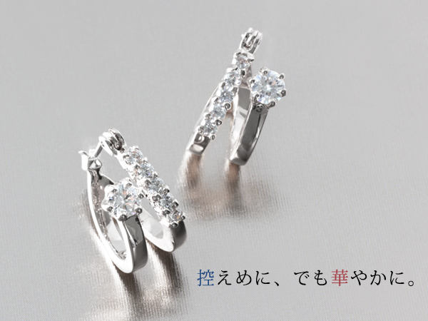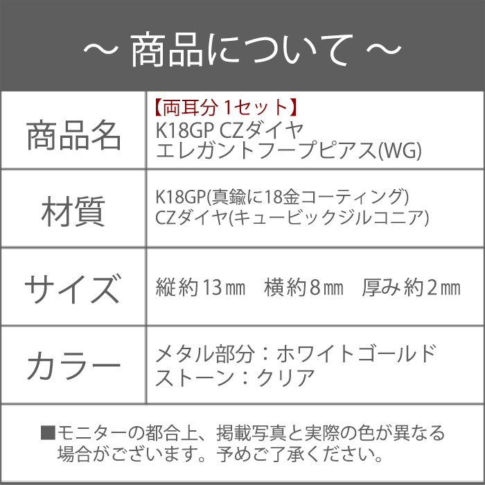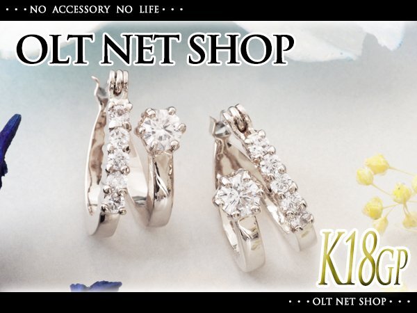 新品/ピアス/K18GP/フープ/リング/ダイヤ/シルバー/18金/女性/レディース/ホワイトゴールド/両耳/キャッチレス/シンプル/CZ/WG